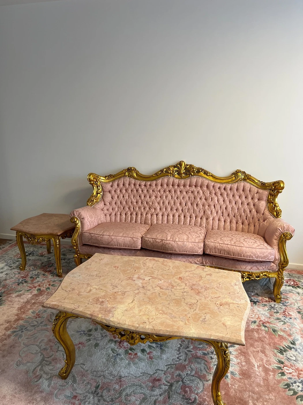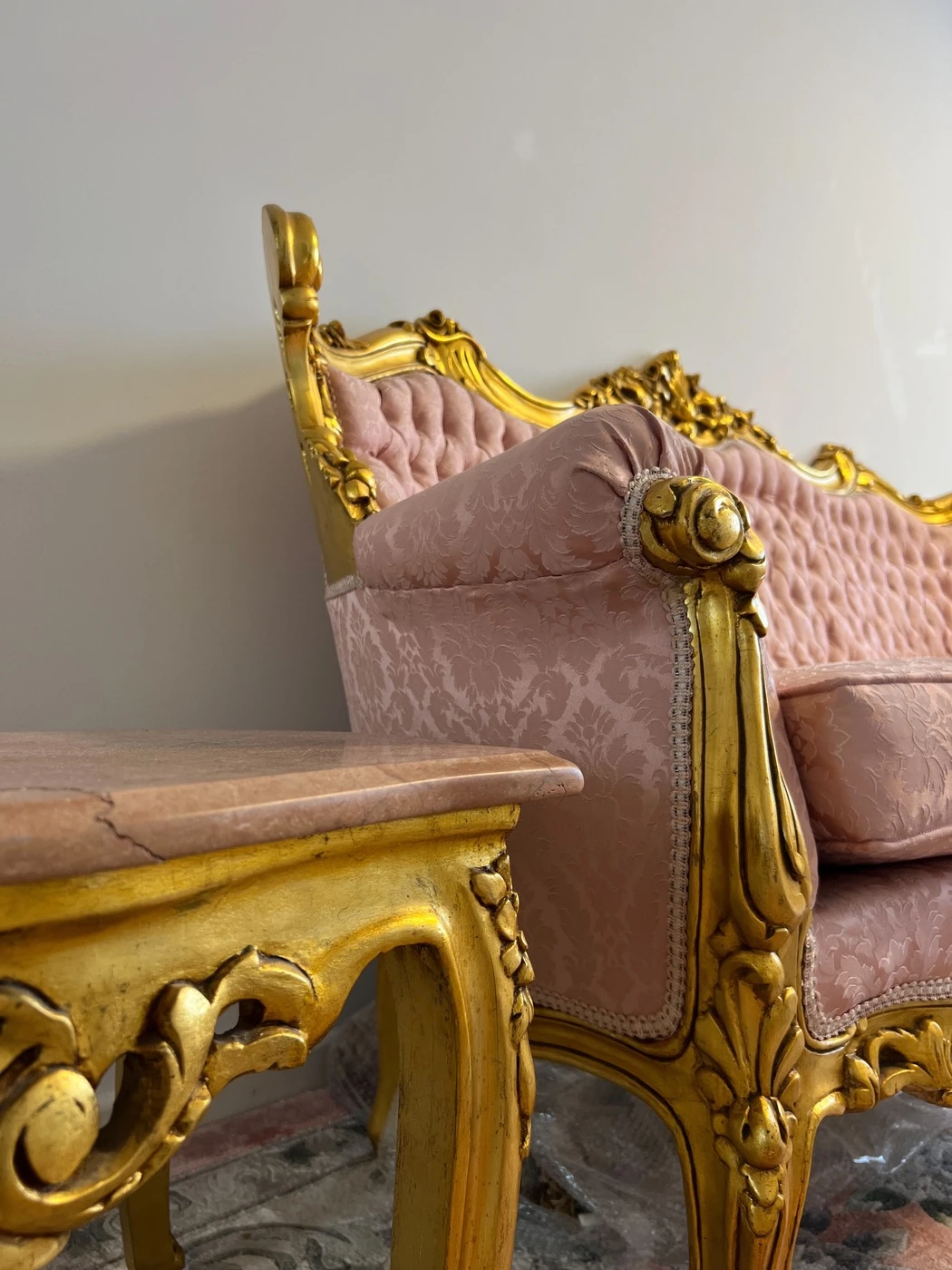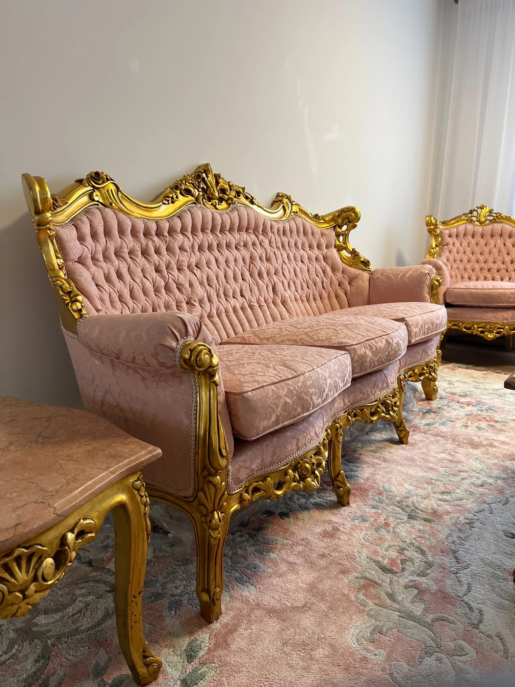 Rokoko / Baroko stiliaus, sofa 190cm, 4 krėslai, vienas didelis marmuro stalas ir 2 mažesni staliukai. Puikios bukles
