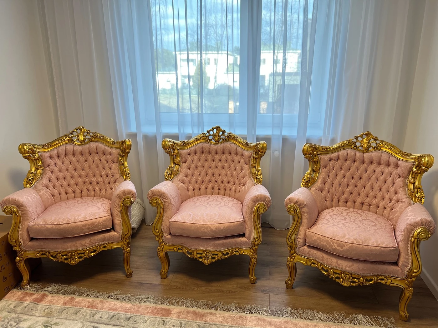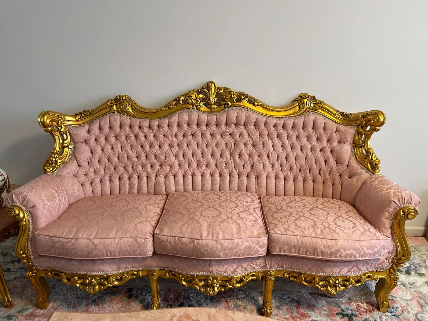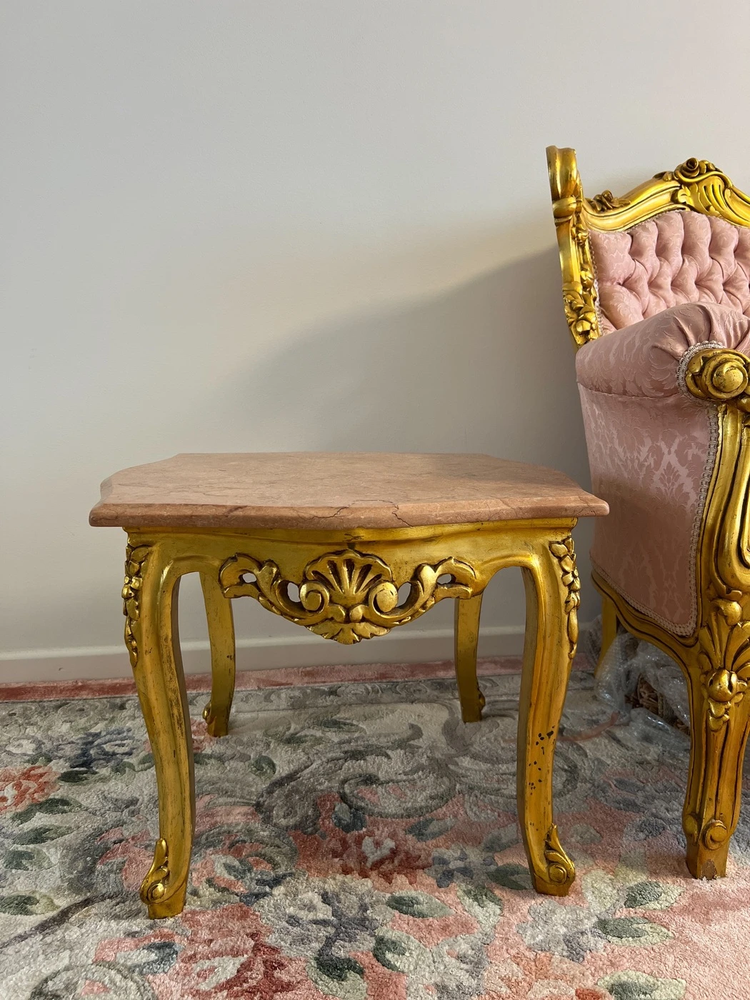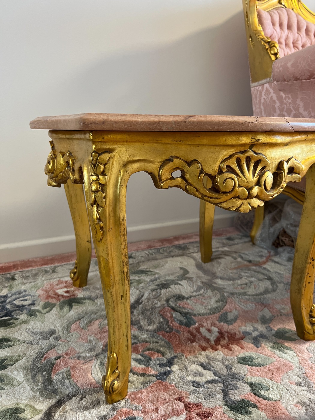 Rokoko / Baroko stiliaus, sofa 190cm, 4 krėslai, vienas didelis marmuro stalas ir 2 mažesni staliukai. Puikios bukles