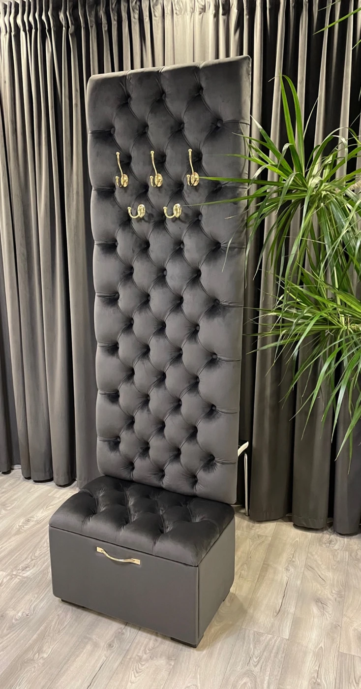 Šie prabangūs veliūriniai prieškambario baldai yra puikus pasirinkimas tiems, kurie vertina kokybę, išskirtinumą ir komfortą. Tegul jūsų namai spinduliuoja elegancija ir išskirtiniu stiliumi!