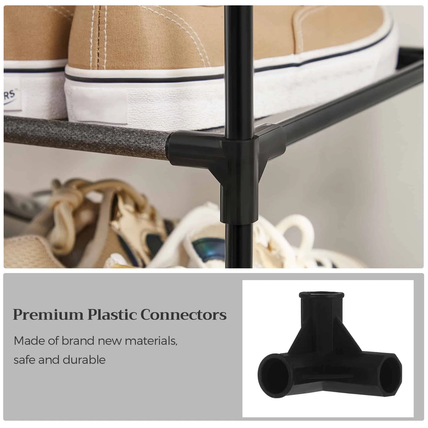 Aprašymas buvo automatiškai išverstas, gali pasitaikyti klaidų. Jūsų saugojimo ekspertas Pavargote, kad jūsų batų kolekcija pateko į netvarką? Nesijaudink! Ši SONGMICS batų lentyna su 4 lentynomis puikiai tiks. Sustiprinti metaliniai vamzdžiai ir aukštos kokybės plastikinės jungtys užtikrina aukštą stabilumą ir gerą atsparumą, todėl ši lentyna lengvai atlaikys jūsų batus. Be to, neaustinės medžiagos lentynos yra atsparios dilimui ir lengvai valomos. Dėl mažo svorio šią lentyną taip pat galite lengvai transportuoti. Kas valdo chaosą, tas valdo gyvenimą! Pasilepinkite šiuo vietos taupančiu stovu su 4 lentynomis ir suvaldykite batų chaosą.Informacija apie gaminį: - Spalva: juoda - Medžiaga: metalinis vamzdis, neaustinis audinys, plastikinė jungtis - Dydis: 45 x 28 x 80 cm (P x P x A) - Svoris: 0,7 kg - Maksimali statinė apkrova vienam lygiui: 3 kg - Maks. Bendra statinė apkrova: 12 kg Pristatymo apimtis: - 1 x batų lentyna su 4 lentynomis - 1 x apsauga nuo apvirtimo - 1 x instrukcijos (DE, EN, FR, ES, IT) SONGMICS Pastabos: - Nedėkite naudokite gaminį lauke - Jis skirtas vaikams Saugumo sumetimais draudžiama lipti ar žaisti su gaminiu. - Pritvirtinkite šį gaminį prie sienos su pridedamu apsaugos nuo apsivertimu, kad užtikrintumėte saugų naudojimą.