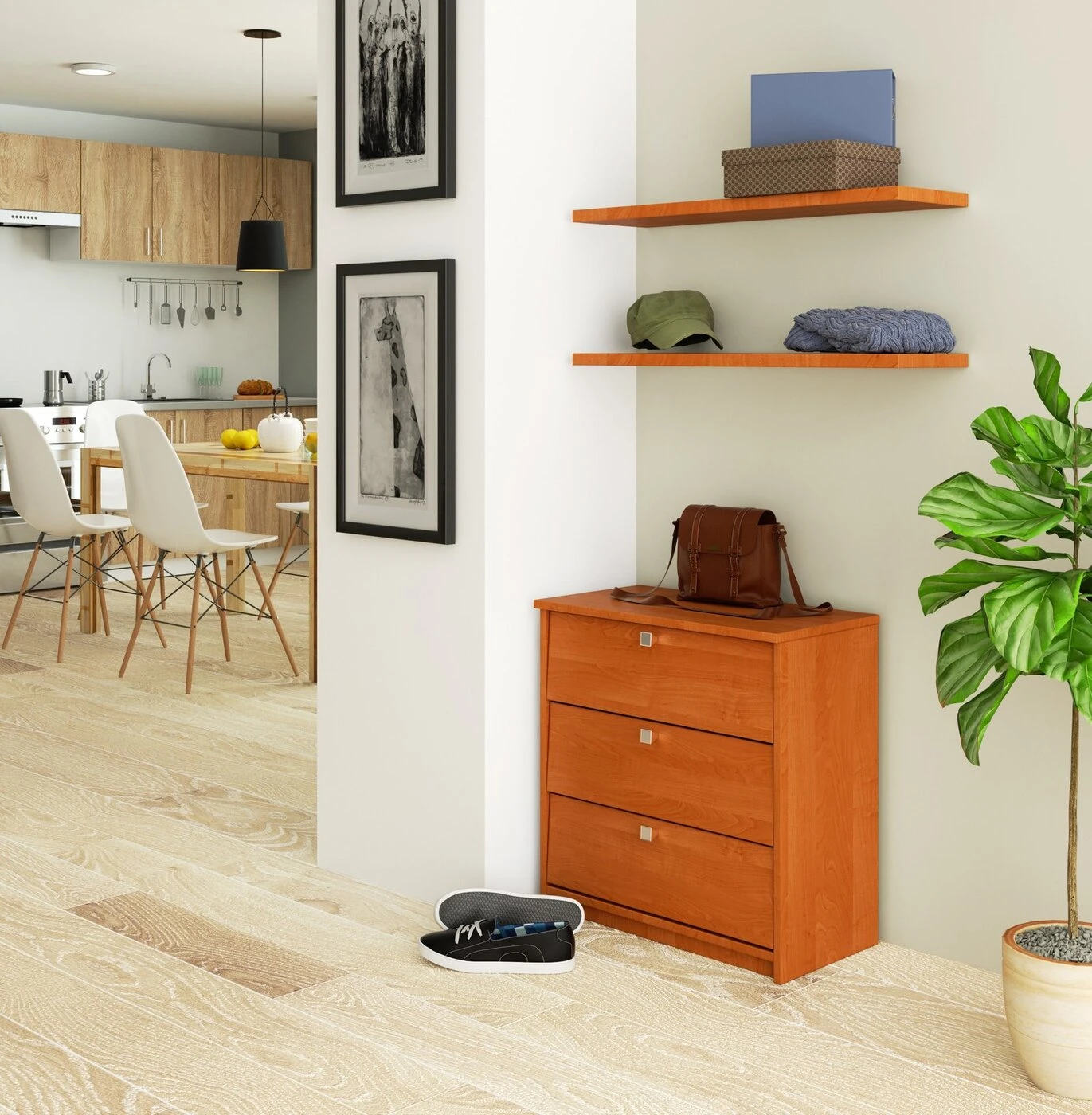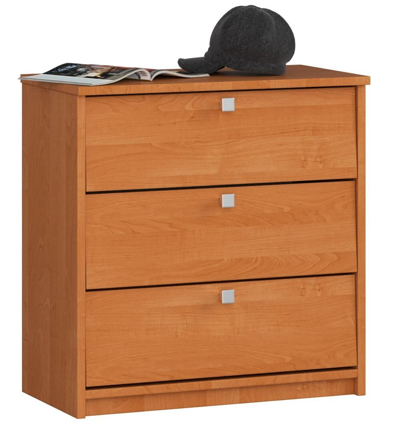 Aprašymas buvo automatiškai išverstas, gali pasitaikyti klaidų. Kaip elgtis su batais, kurie nuolat išsibarstę salėje? Idealus sprendimas bus universalios alksnio spalvos batų spintelė. Tai baldas, kuris leis palaikyti tvarką net ir mažoje patalpoje. Maži matmenys ir patraukli kaina daro spintelę populiariu pasirinkimu besilankantiems mūsų internetinėje parduotuvėje. Dėl klasikinės baldų išvaizdos jie puikiai tinka bet kokiam išdėstymui. Trijuose atverčiamuose stalčiuose bus galima sutalpinti iki keliolikos batų porų. Spintelė pagaminta iš laminuotos plokštės, kurios ilgaamžiškumas viršija vidutinį ir pasižymi dideliu atsparumu dilimui. ABS ratlankiu padengti kraštai užtikrina atsparumą pažeidimams, o tai ir yra pristatomo modelio privalumas. Tarp mūsų paruoštų variantų rasite ir kitų šios spalvos batų spintelių, kurios skiriasi stalčių skaičiumi. Alksnio spalvos pastatoma spinta puikiai papildys bet kurią funkcionaliai įrengtą salę, taip pat miegamąjį ar drabužių spinta. - Spintelė pagaminta iš dilimui atsparios laminuotos plokštės - Durų fasadai iš laminuotos plokštės - Su vyriais durys - Atverčiamų durų viduje yra 3 lentynos - Matomi kraštai, padengti ABS briauna, padidina atsparumą pažeidimams - Satino durų rankenos - Savarankiškai surenkama spintelė - Pateikiama instrukcija - Garantija 24 mėn.