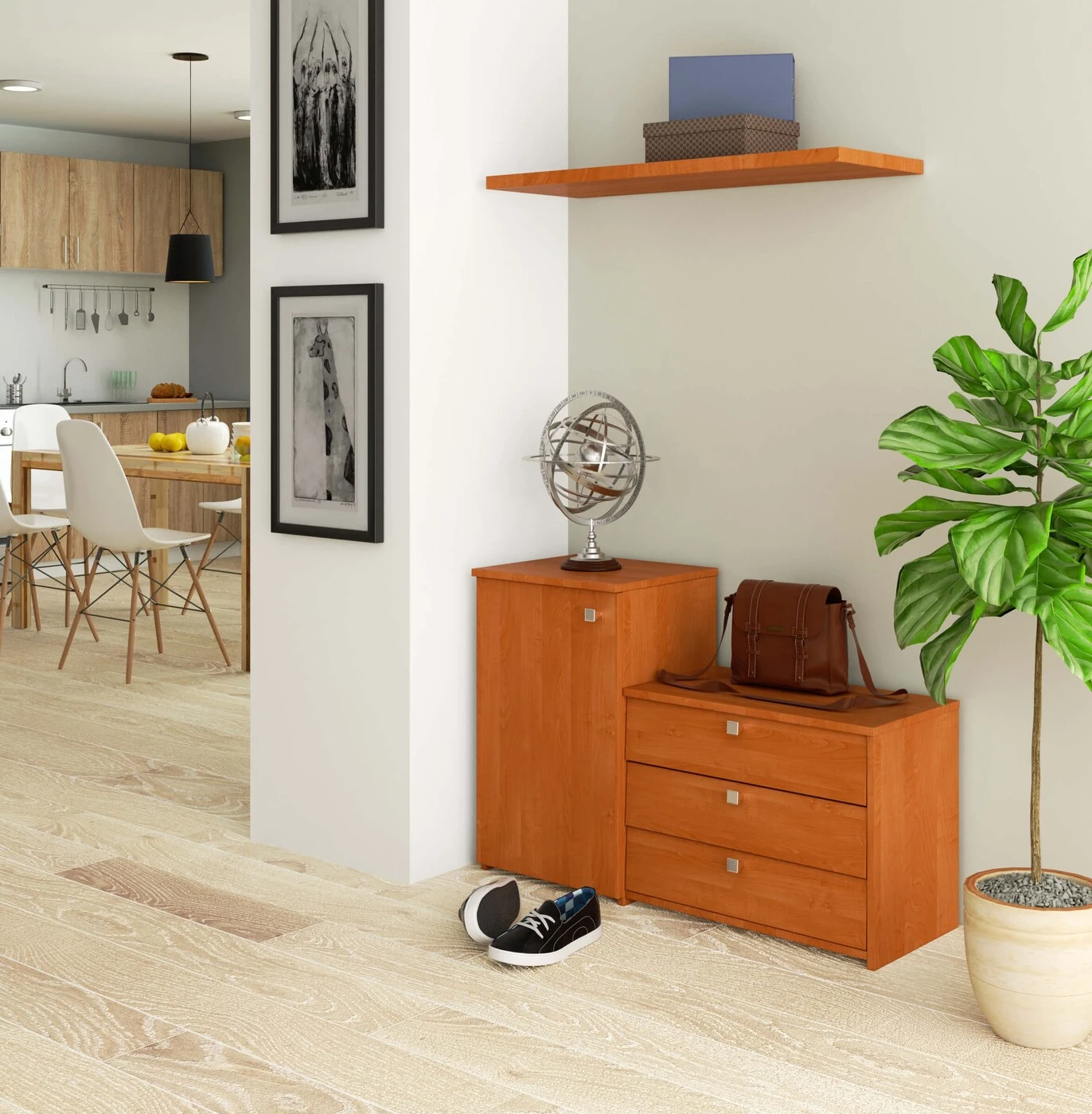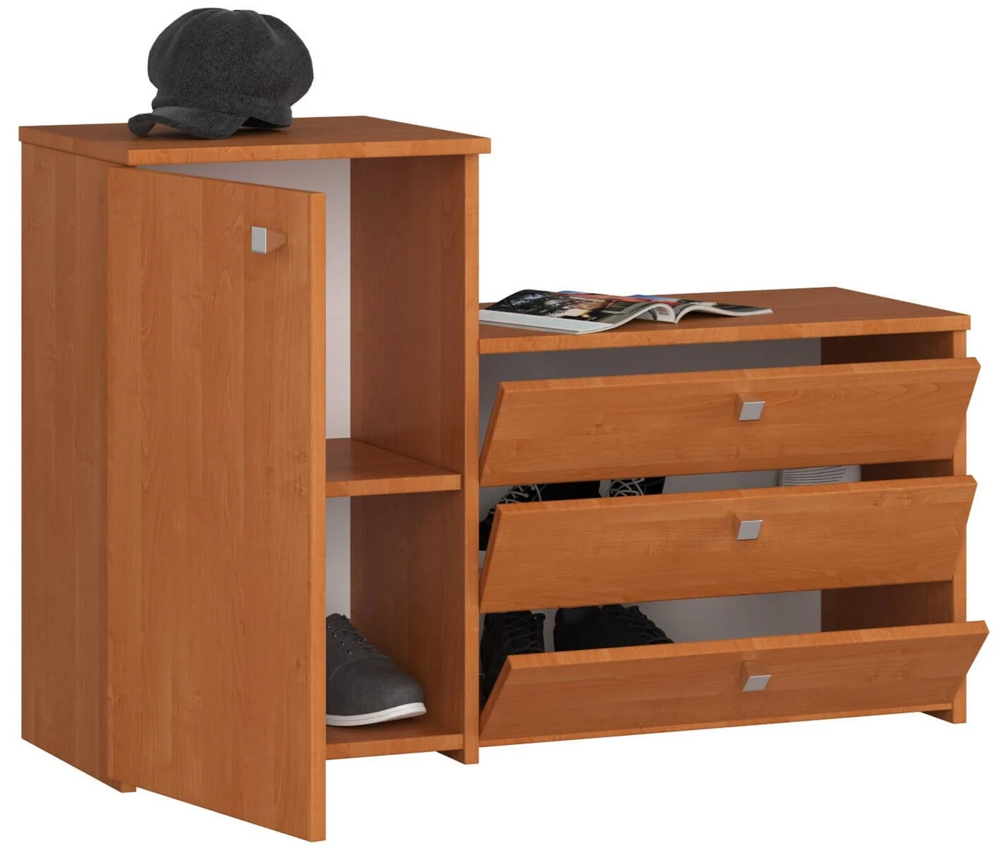 Aprašymas buvo automatiškai išverstas, gali pasitaikyti klaidų. Pristatomas pasiūlymas skirtas žmonėms, kurie yra prieškambario ar spintos įrengimo stadijoje ir ieško solidžiai pagamintų baldų klasikiniame variante. Mūsų pristatoma praktiška batų spintelė – tai sprendimas, skirtas tradicionalistams, vertinantiems patikrintus, funkcionalius sprendimus. Jis susideda iš dviejų dalių - atidaromas durelėmis, įskaitant dvi lentynas ir tris stalčius batams. Dėl to spintoje galima sutalpinti visus reikalingus daiktus prieškambaryje – ne tik batus, bet ir kepures, šalikus bei pirštines. Verta dėmesio spintos kaina ir solidus apdirbimas. Baldai puikiai dera su kitais šios kolekcijos gaminiais. Dėl to galėsite įrengti efektyvų ir funkcionalų kambarį, kuris pateisins net išrankiausių mūsų internetinės parduotuvės klientų lūkesčius. Pastatoma spintelė pagaminta iš alksnio spalvos laminuotos plokštės. Ratlankis buvo faneruotas ABS. – spintelė pagaminta iš dilimui atsparios laminuotos plokštės - Palenkiami stalčiai – Stalčių fasadai iš laminuotos plokštės – 3 lentynos atverčiamuose stalčiuose – durelių viduje yra viena lentyna – matomi kraštai, padengti ABS apvadu, kad padidėtų patvarumo pažeidimas - Sidabrinės stalčiaus ir durų rankenos - Savarankiškai surenkama komoda – Instrukcija pateikiama – 24 mėnesių garantija