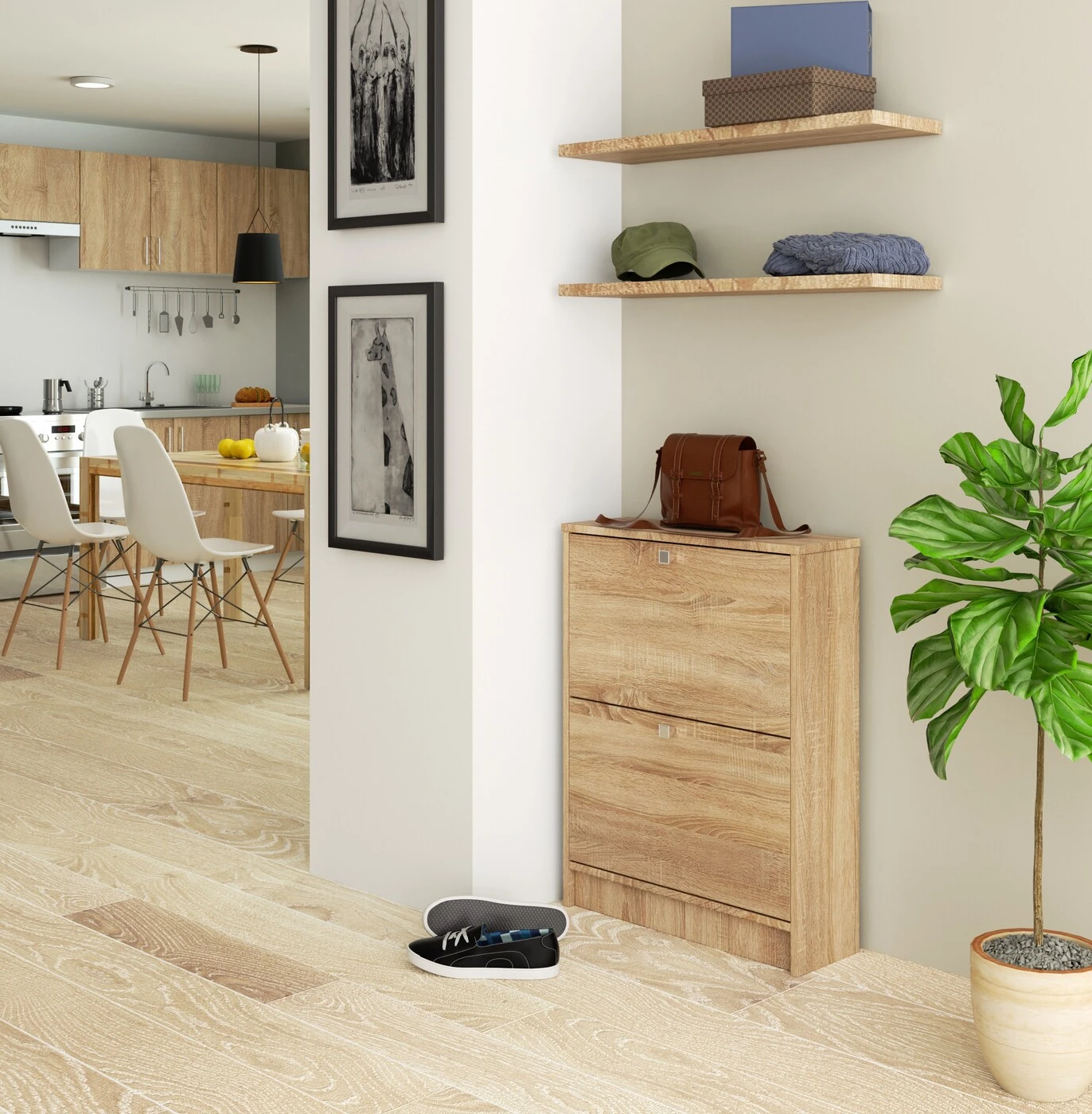 Aprašymas buvo automatiškai išverstas, gali pasitaikyti klaidų. Batų spinta – tai baldas, kuris pravers kiekviename koridoriuje. Tai leis jums rūšiuoti batus ir laikyti juos tokioje vietoje, kur galėsite lengvai rasti kiekvieną batų porą. Spintelė, kurią džiaugiamės galėdami pristatyti, yra nesenstančios spalvos modelis, kuris yra sonoma ąžuolas. Baldai pagaminti iš kokybiškos, patvarios ir atsparios laminuotos plokštės, atsparios dilimui. Ratlankis faneruotas ABS. Produktą galite įsigyti mūsų internetinėje parduotuvėje už puikią kainą. Spintelę sudaro du labai erdvūs, pakeliami stalčiai. Juose nesunkiai tilps kelios ar net keliolika batų porų. 60 centimetrų pločio baldas puikiai atliks savo funkciją net ir mažoje patalpoje. Atkreiptinas dėmesys į solidžią spintos struktūrą ir funkcionalumą, todėl baldai yra populiarus pasirinkimas tarp klientų, besilankančių mūsų internetinėje parduotuvėje. Taip pat svarbi patraukli kaina, kurią siūlome už batų spintelę. - Spintelė iš laminuotos plokštės, atspari trinčiai - Durų fasadai iš laminuotos plokštės - Atverčiamos durys - Durų viduje yra vienos eilės plastikinis batų krepšelis - Matomi kraštai padengti ABS fanera, kad būtų didesnis atsparumas pažeidimams - Sidabrinės durų rankenos - Savaiminio surinkimo spintelė - Pateikiama instrukcija - Garantija 24 mėn.