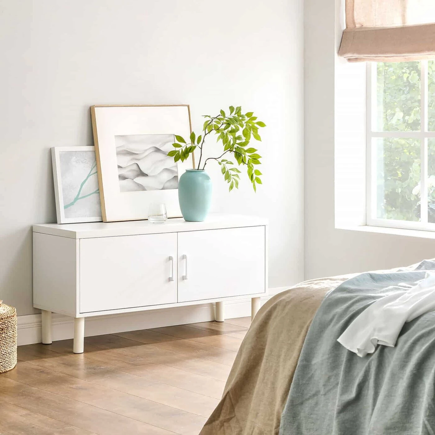 Aprašymas buvo automatiškai išverstas, gali pasitaikyti klaidų.Išsami informacija apie gaminį: - Spalva: balta - Medžiaga: medžio drožlių plokštės, metalas - Dydis: 100 x 35 x 38 cm (P x P x A)Dėžutės turinys: - 1 x batų spintelė - 1 x priedų pakuotė - 1 x instrukcijos