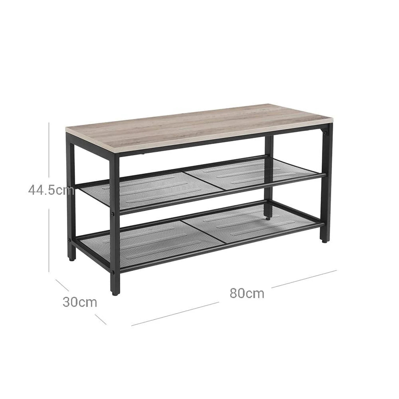 Aprašymas buvo automatiškai išverstas, gali pasitaikyti klaidų.Išsami informacija apie gaminį: - Spalva: pilkai juoda - Medžiaga: medžio drožlių plokštės, Plienas - Dydis: 80 x 30 x 44,5 cm (P x P x A) - Svoris: 5,9 kg - Maksimali statinė paviršiaus apkrova: 90 kg - Maks. Statinė apkrova tinklelio lentynai: 5 kgPristatymo apimtis: - 1 x batų suoliukas - 1 x priedų paketas - 1 x vadovas (DE, EN, ES, FR, IT) VASAGLE Pastabos: - Pastatykite gaminį taip, kad jis nebūtų veikiamas šilumos šaltinių, tiesioginių saulės spindulių ar - Vaikams draudžiama lipti ant gaminio.