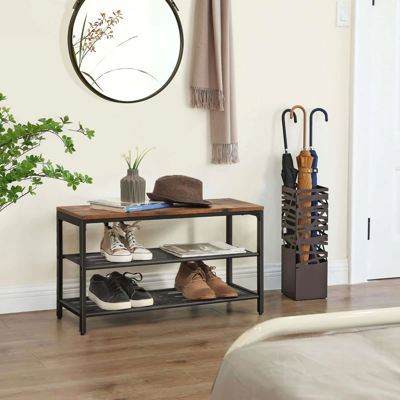 Aprašymas buvo automatiškai išverstas, gali pasitaikyti klaidų.Išsami informacija apie gaminį: - Spalva: Tamsiai ruda/Vintage - Medžiaga: Medžio drožlių plokštė, Geležis - Dydis: 80 x 30 x 44,5 cm (P x P x A) - Svoris: 5,9 kg - Maksimali statinė paviršiaus apkrova: 90 kg - Maksimali tinklelio lentynos statinė apkrova: 5 kg Pristatymo komplektacija: - 1 x batų suoliukas - 1 x krepšys priedams - 1 x rankinis (DE, EN, ES, FR, IT) VASAGLE Pastabos: - Padėkite gaminį taip kad jis nebūtų nei šilumos šaltinių, tiesioginių saulės spindulių ar drėgmės veikiamas.- Neleiskite vaikams lipti ant gaminio.