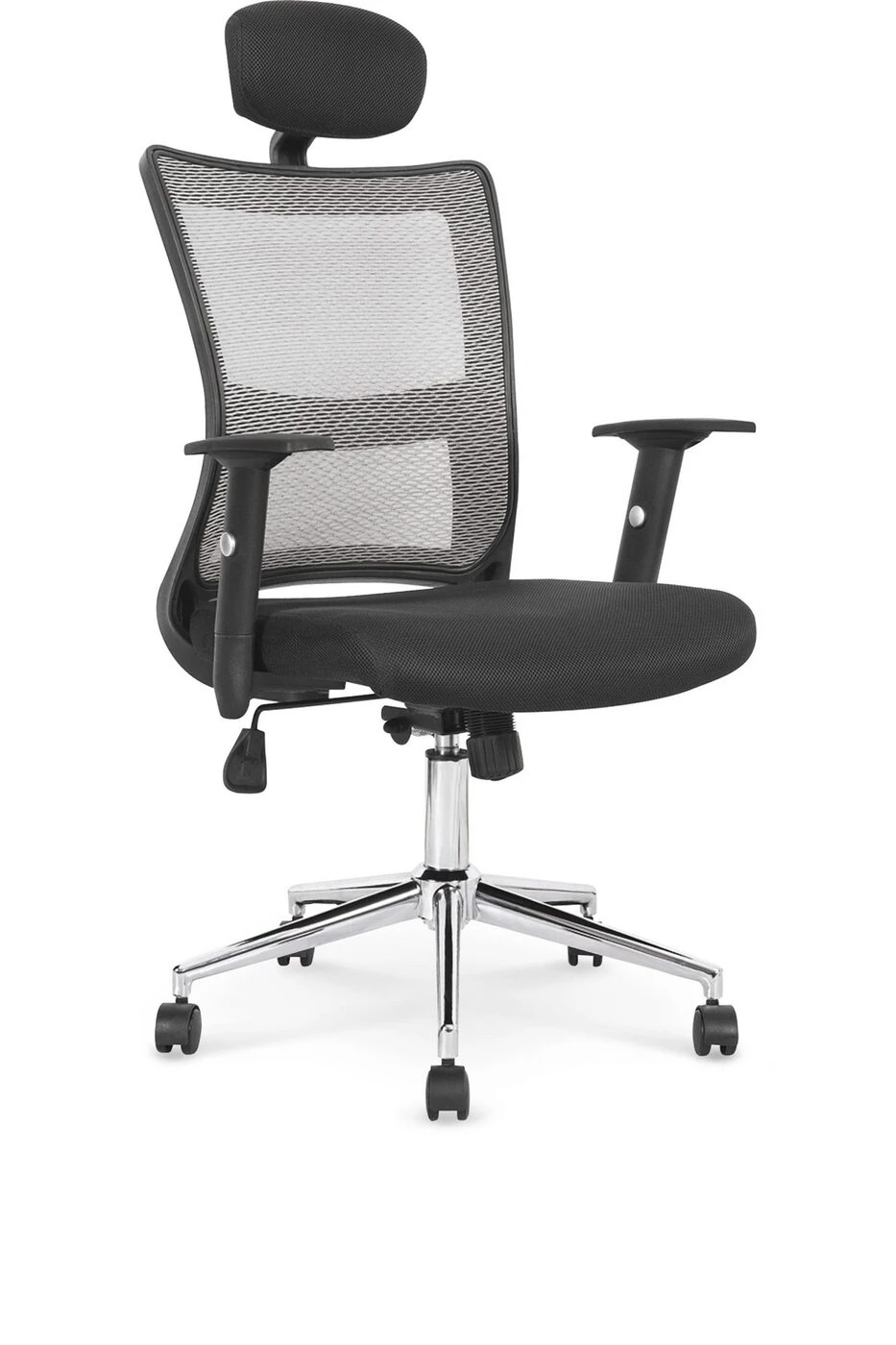 Juodai pilka biuro kėdė su sėdynės auksčio reguliavimu. Nugaros atlošas aptrauktas tinkleliu, o sėdynė membraniniu audiniu. Sedynė su elastingu poliuretano užpildu užtikrina patogų sedėjimą. Kėdė su galvos atrama. Minkšti ratukai puikiai tinka važinėti kietomis grindimis ir jų nebraižo.