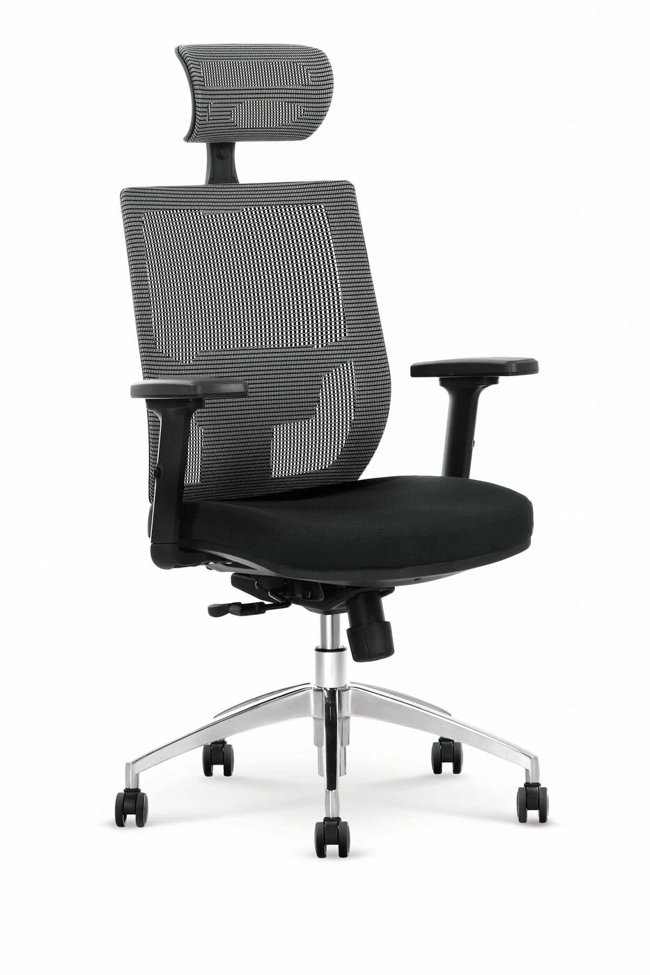 Juodai pilka biuro kėdė su sėdynės gylio reguliavimu. Lankstus nugaros ir galvos atlošas prisitaiko prie žmogaus judesių ir jų nevaržo. Reguliuojami porankiai. Sedynė su itin aukšto elastingumo poliuretano užpildu užtikrina patogų sedėjimą. Minkšti ratukai puikiai tinka važinėti kietomis grindimis ir jų nebraižo.