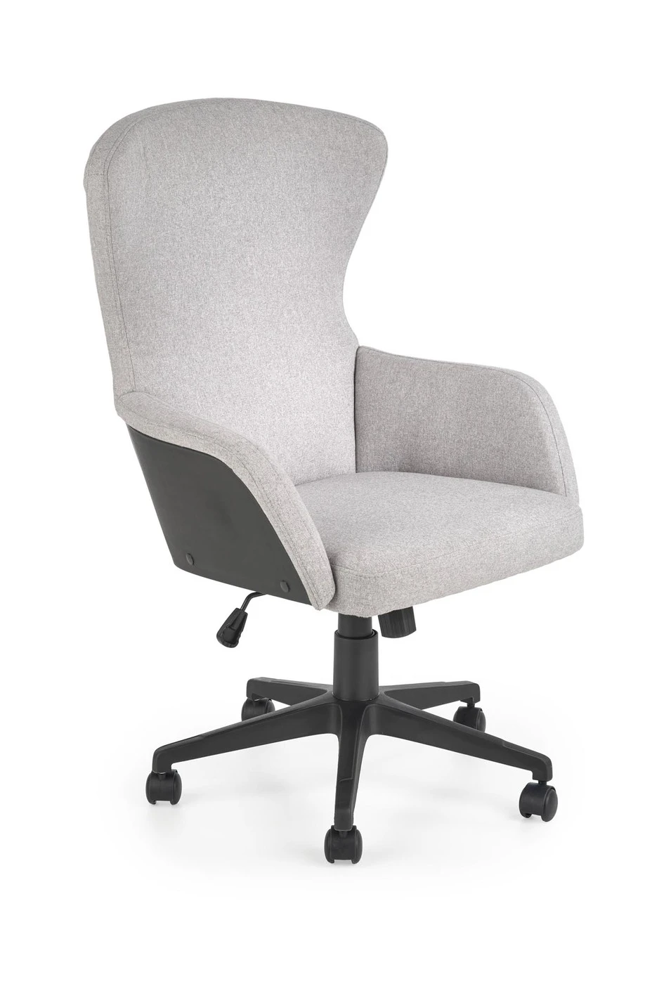 Šviesiai pilka biuro kėdė su sėdynės auksčio reguliavimo funkcija. Nugaros atlošas ir sedynė aptraukti audiniu. Sėdynė su elastingu poliuretano užpildu užtikrina patogų sėdėjimą. Minkšti ratukai puikiai tinka važinėti kietomis grindimis ir jų nebraižo. Su porankiais.