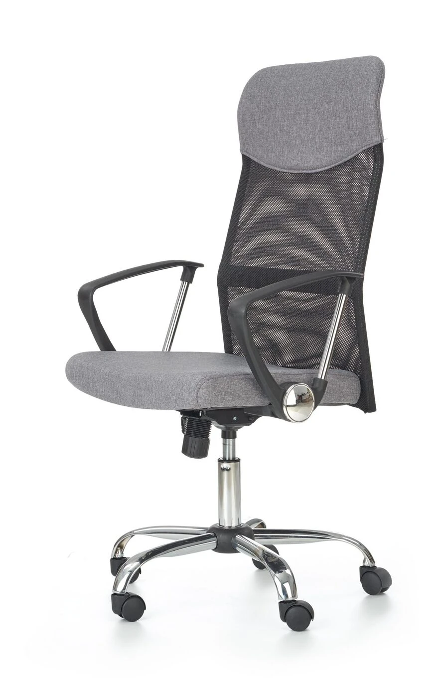 Juodai pilka biuro kėdė su sėdynės auksčio reguliavimo funkcija. Nugaros atlošas aptrauktas tinkleliu, o sėdynė ir galvos atrama aptraukta audiniu. Sėdynė su elastingu poliuretano užpildu užtikrina patogų sėdėjimą. Minkšti ratukai puikiai tinka važinėti kietomis grindimis ir jų nebraižo.