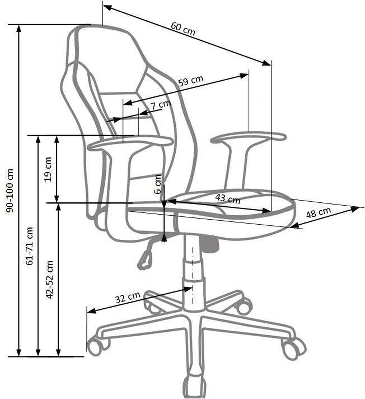 TILT mechanizmas, matmenys: 59/60/90-100/42-52 cm, medžiaga: eko oda / perforuota eko oda / membraninis audinys, spalva: raudona / juoda / pilka