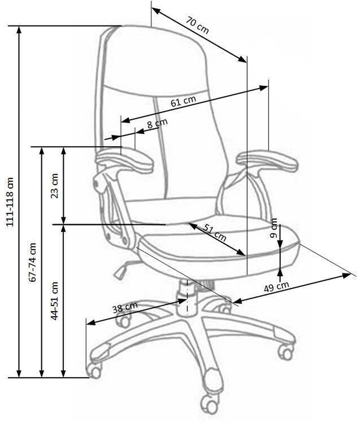 daugiablokis mechanizmas, guma dengti ratai, matmenys: 64/70/111÷118 cm, medžiaga: perforuota eko oda, spalva: juoda