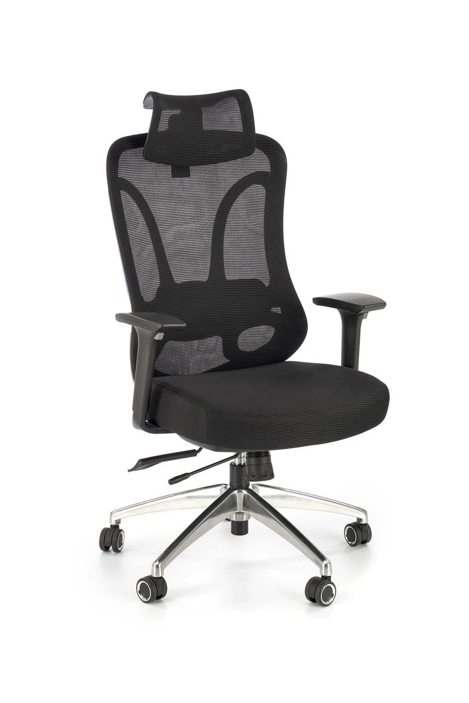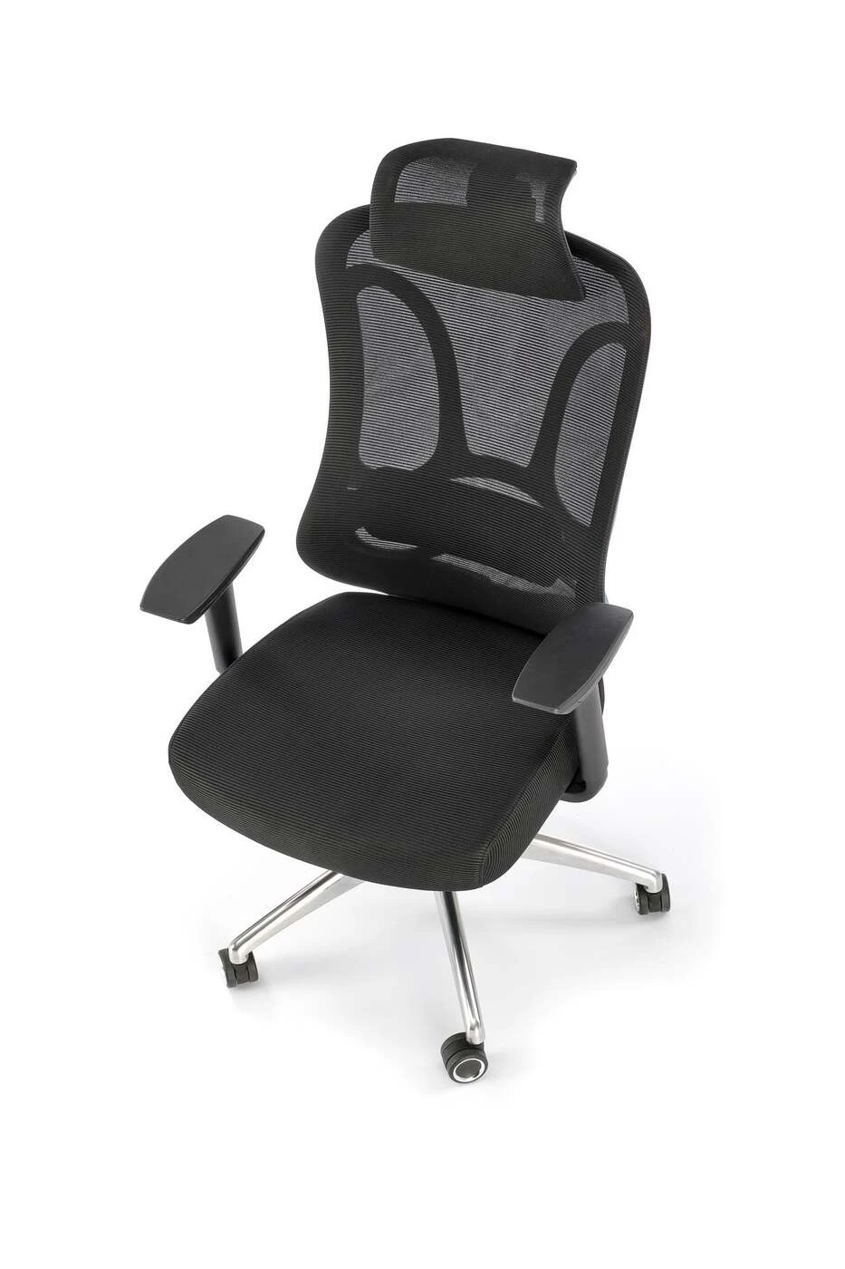 matmenys: 64/70/121-129/45-53 cm, sinchroninis mechanizmas / reguliuojama galvos atrama / reguliuojami porankiai / reguliuojama juosmens atrama / stumdoma sėdynė / aliuminio pagrindas, membraninis audinys / tinklelis, spalva: juoda