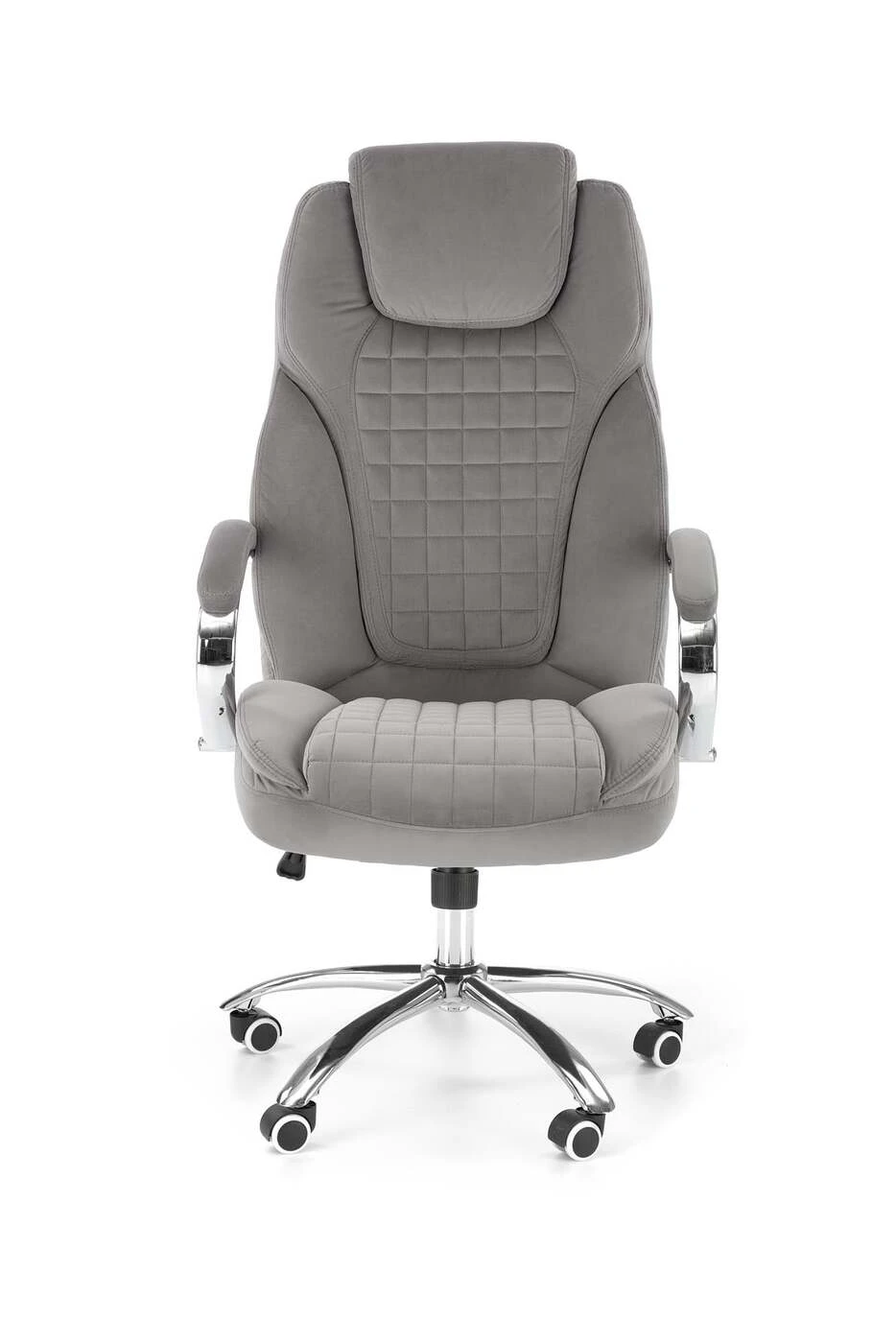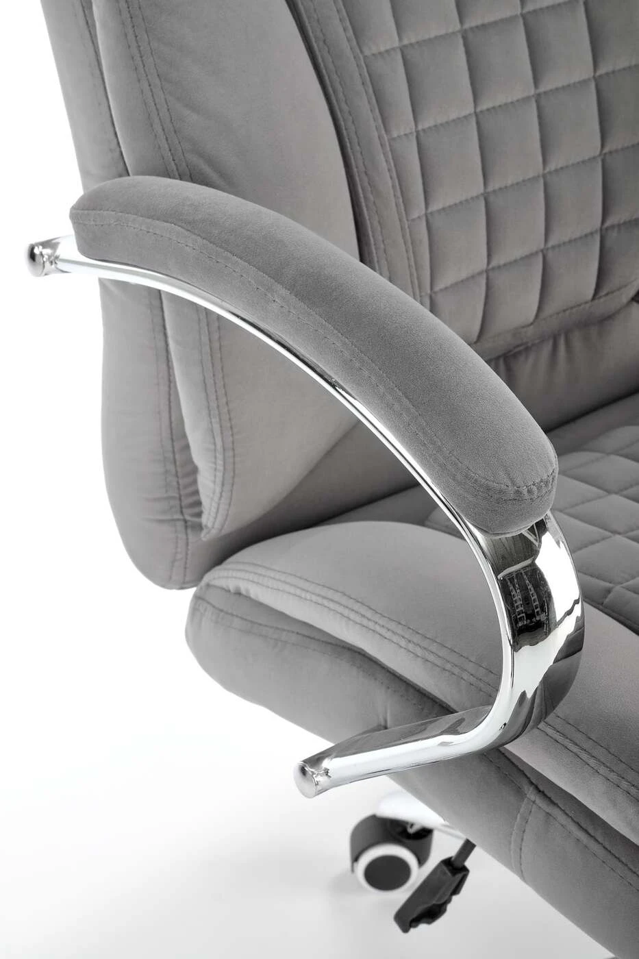 matmenys: 67/76/116-124/50-58 cm, TILT mechanizmas / guma padengti ratai, aksominis audinys, spalva: pilka
