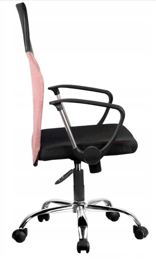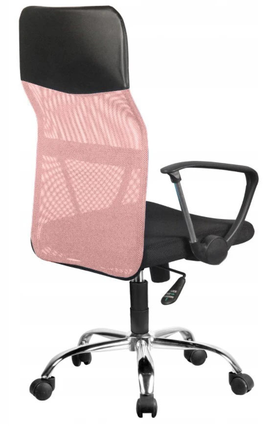 Patogi ir ergonomiška biuro kėdė;Pneumatinis kėdės aukščio reguliavimas;Reguliavimas aukštyn/žemyn;Aukštas atlošas iš tinklinio audinio;Patogūs porankiai;Plastikiniai ratukai;Kėdės spalva: rožinė/juoda;Bendri kėdės išmatavimai: plotis - 61 cm, aukštis - 99-107,5 cm, gylis - 50 cm;Kėdės sėdimosios dalies aukštis nuo grindų: pakėlus – 50 cm, nuleidus – 40 cm;Kėdės sėdimosios dalies išmatavimai: plotis - 48 cm, gylis – 49 cm;