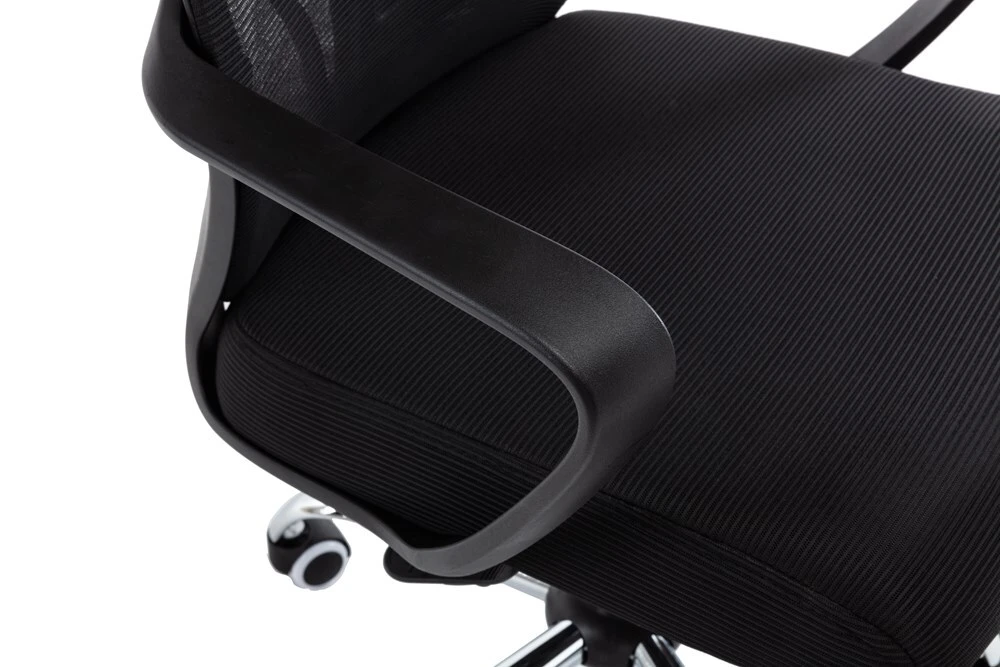 Ergonomiška darbo kėdė aptraukta orui laidžiu tekstiliniu audiniu;Reguliuojamas kėdės aukštis leis patogiai įsitaisyti ir darbant, ir žaidžiant tiek aukštesniam, tiek žemesniam žmogui;Tvirta chromuota kryžmė yra itin patvari ir stabili;Pneumatinis, teleskopinis pakėlimo ir nuleidimo mechanizmas;Reguliuojamas pasvirimo kampas su užraktu;Galvos atrama,Juosmens atrama;Patogūs porankiai;Kėdės išmatavimai: aukštis – 125 cm, plotis – 68 cm, gylis – 52 cm;Sėdynės išmatavimai: aukštis (nuo grindų): pakėlus – 57 cm, nuleidus – 47 cm, plotis – 50 cm, gylis – 48 cm;Spalva – juoda, mėlyna;Kėdės ratukai yra guminiai;