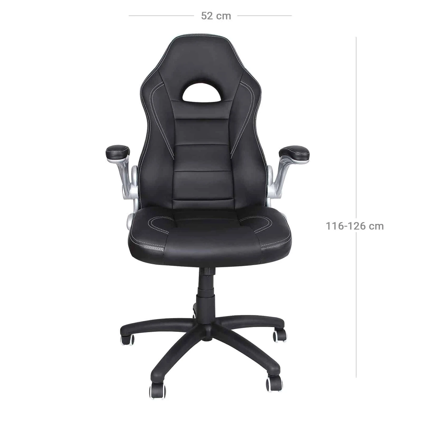 Aprašymas buvo automatiškai išverstas, gali pasitaikyti klaidų.Aprašymas: - Songmics visada yra orientuotas į klientą ir deda visas pastangas, kad prekės būtų aukštos kokybės ir geros kainos ir kokybės santykio. Stilingo dizaino biuro kėdė Sogmics sujungia funkcionalumą ir patogumą su malonumu! - Su aukštos kokybės medžiaga ir patobulintais priedais biuro kėdė Songmics yra tikrai patogi, praktiška ir patvari. Absoliutus akių gaudytojas jūsų kambaryje! Pastaba: - Montuodami atramą, atkreipkite dėmesį, kad pusė su ženklu ""Priekinė"" turi būti nukreipta į priekį. - Suimkite galinę dešinę svirtį ir patraukite ją, tada galėsite nuolat reguliuoti sėdynės aukštį pakeldami arba iškeldami kėdę, kol svirtis patraukta, kol pasieksite pageidaujamą sėdynės aukštį. Patraukus svirtį į išorę, suaktyvinama siūbavimo funkcija. Tada atlošas nėra fiksuotas, o atlošas palaiko nugarą kiekviename judesyje ir su ja juda dinamiškai. Dar kartą paspaudus svirtį, siūbavimo funkcija išjungiama. Atlošą vėl galima pritvirtinti. - Kai suaktyvinta svirties funkcija, atsilošus sėdynė ir atlošas juda kartu. Atlošo pasvirimo negalima keisti atskirai nuo sėdynės dalies. Išsami informacija apie gaminį: - Pagrindo skersmuo: apie 70 cm - Sėdynės: 54 x 51 cm (P x G) - Atlošo aukštis: apie 79 cm - Bepakopis sėdynės aukščio reguliavimas: apie 46,5-56 cm - Aukštis nuo porankiai iki grindų: apie 69-79 cm - Medžiaga: PU sintetinė oda, kempinė, tinklinis užvalkalas, nailono pagrindas - Spalva: juoda Pristatymo komplektas: - 1 x biuro kėdė - 1 x instrukcijos (vokiečių, anglų, prancūzų, italų, ispanų) - 1 x furnitūros krepšys