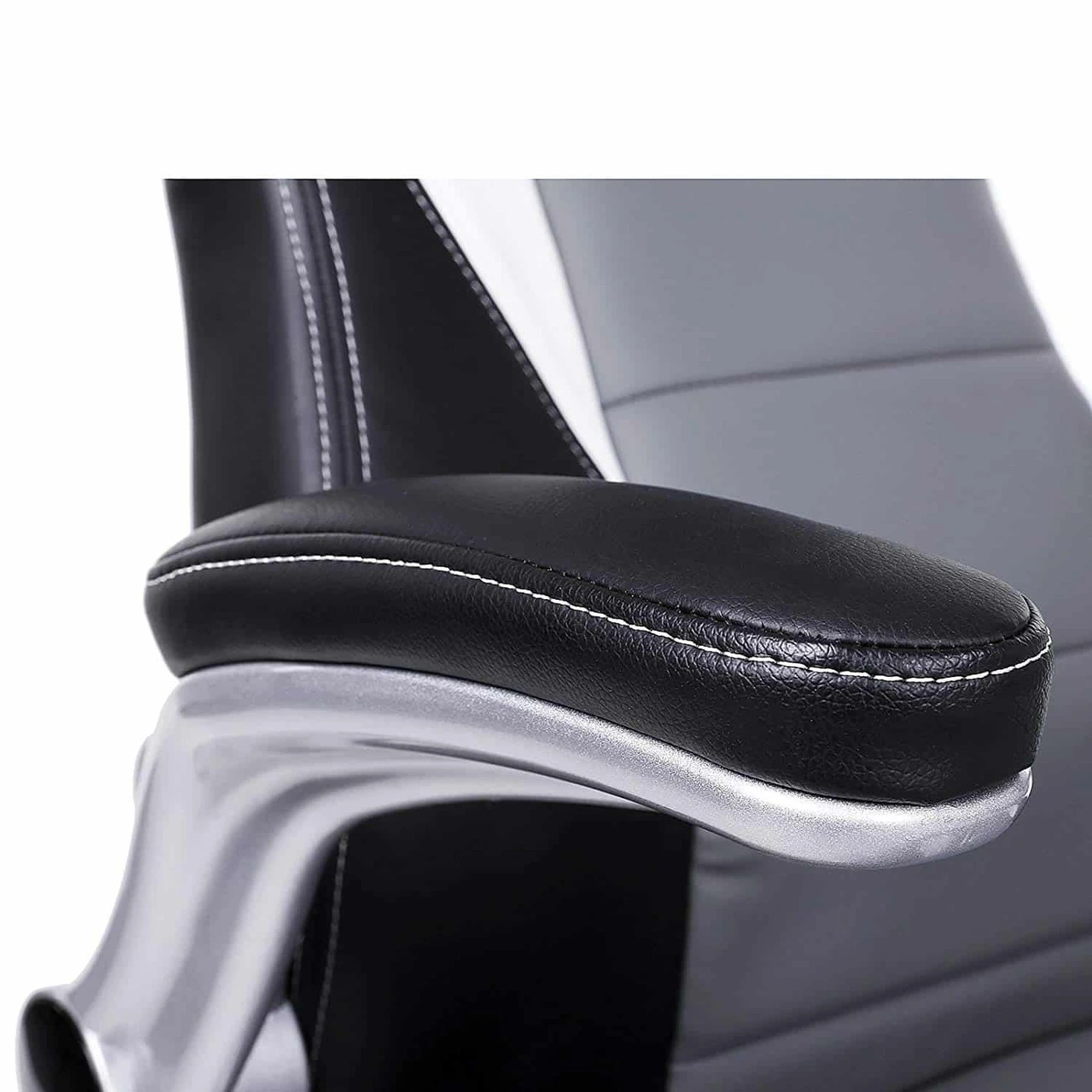 Aprašymas buvo automatiškai išverstas, gali pasitaikyti klaidų.Aprašymas: - Songmics visada yra orientuotas į klientą ir deda visas pastangas, kad prekės būtų aukštos kokybės ir geros kainos ir kokybės santykio. Stilingo dizaino biuro kėdė Sogmics sujungia funkcionalumą ir patogumą su malonumu! - Su aukštos kokybės medžiaga ir patobulintais priedais biuro kėdė Songmics yra tikrai patogi, praktiška ir patvari. Absoliutus akių gaudytojas jūsų kambaryje! Pastaba: - Montuodami atramą, atkreipkite dėmesį, kad pusė su ženklu ""Priekinė"" turi būti nukreipta į priekį. - Suimkite galinę dešinę svirtį ir patraukite ją, tada galėsite nuolat reguliuoti sėdynės aukštį pakeldami arba iškeldami kėdę, kol svirtis patraukta, kol pasieksite pageidaujamą sėdynės aukštį. Patraukus svirtį į išorę, suaktyvinama siūbavimo funkcija. Tada atlošas nėra fiksuotas, o atlošas palaiko nugarą kiekviename judesyje ir su ja juda dinamiškai. Dar kartą paspaudus svirtį, siūbavimo funkcija išjungiama. Atlošą vėl galima pritvirtinti. - Kai suaktyvinta svirties funkcija, atsilošus sėdynė ir atlošas juda kartu. Atlošo pasvirimo negalima keisti atskirai nuo sėdynės dalies.Išsami informacija apie gaminį: - Pagrindo skersmuo: apie 70 cm - Sėdynės: 54 x 51 cm (P x G) - Atlošo aukštis: apie 79 cm - Bepakopis sėdynės aukščio reguliavimas: apie 46,5-56 cm - Aukštis nuo porankiai iki grindų: apie 69-79 cm - Medžiaga: PU sintetinė oda, kempinė, tinklinis užvalkalas, nailono pagrindas - Spalva: juoda-pilka-balta Pristatymo komplektas: - 1 x biuro kėdė - 1 x instrukcijos (vokiečių k., Anglų, prancūzų, italų, ispanų) - 1 x aparatūros krepšys
