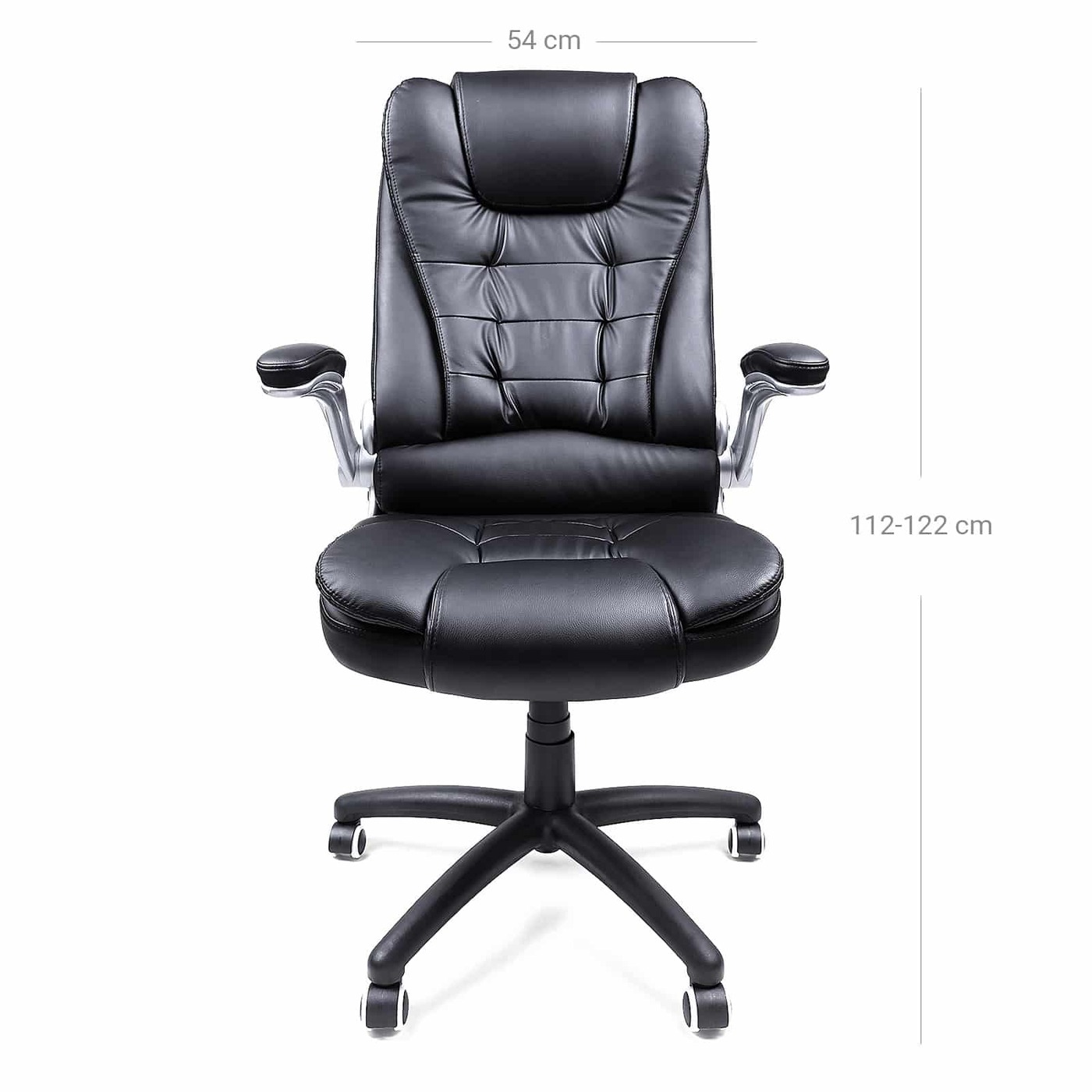 Aprašymas buvo automatiškai išverstas, gali pasitaikyti klaidų.Išsami informacija apie gaminį: - Bendras aukštis: 112 - 122 cm - Atlošo aukštis: 76 cm - Sėdynės: 54 x 51 cm (P x G) - Sėdynės aukštis: 45 - 55 cm - Medžiaga: PU + putplastis + plienas + nailonas Pristatymo komplektacija : - 1 x biuro kėdė - 1 x priedų paketas - 1 x instrukcija (vokiečių, anglų, prancūzų, italų, ispanų k.) SONGMIKAS PASTABOS: - Atkreipkite dėmesį, kad užrašas ""Front"" ant sėdynės mechanizmo surinkimo metu turi būti nukreiptas į priekį. - Suimkite galinę dešinę svirtį po kėde ir patraukite aukštyn, kad sureguliuotumėte sėdynės aukštį. Patraukite svirtį į išorę, kad įjungtumėte siūbavimo funkciją. Paspauskite svirtį atgal, kad išjungtumėte siūbavimo funkciją. - Jei siūbavimo funkcija buvo įjungta, sėdynė ir atlošas juda kartu. Atlošo pasvirimo atskirai keisti negalima.