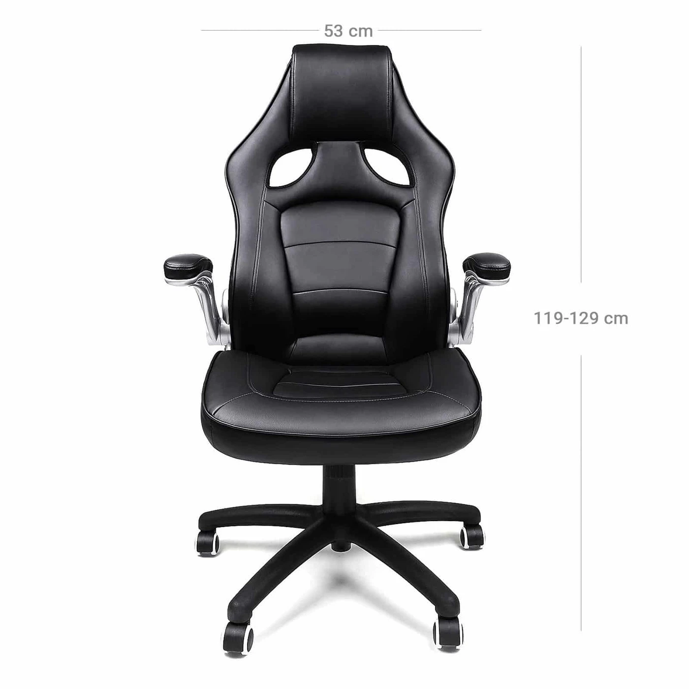 Aprašymas buvo automatiškai išverstas, gali pasitaikyti klaidų.Aprašymas: - Songmics visada yra orientuotas į klientą ir deda visas pastangas, kad prekės būtų aukštos kokybės ir geros kainos ir kokybės santykio. Stilingo dizaino biuro kėdė Sogmics sujungia funkcionalumą ir patogumą su malonumu! - Su aukštos kokybės medžiaga ir patobulintais priedais biuro kėdė Songmics yra tikrai patogi, praktiška ir patvari. Absoliutus akių gaudytojas jūsų kambaryje! Pastaba: - Montuodami atramą, atkreipkite dėmesį, kad pusė su ženklu ""Priekinė"" turi būti nukreipta į priekį. - Suimkite galinę dešinę svirtį ir patraukite ją, tada galėsite nuolat reguliuoti sėdynės aukštį pakeldami arba iškeldami kėdę, kol svirtis patraukta, kol pasieksite pageidaujamą sėdynės aukštį. Patraukus svirtį į išorę, suaktyvinama siūbavimo funkcija. Tada atlošas nėra fiksuotas, o atlošas palaiko nugarą kiekviename judesyje ir su ja juda dinamiškai. Dar kartą paspaudus svirtį, siūbavimo funkcija išjungiama. Atlošą vėl galima pritvirtinti. - Kai suaktyvinta svirties funkcija, atsilošus sėdynė ir atlošas juda kartu. Atlošo pasvirimo negalima keisti atskirai nuo sėdynės dalies. Išsami informacija apie gaminį: - Bendras aukštis: apie 119 - 129 cm - Atlošo aukštis: apie 80 cm - Sėdynės plotas: 53 x 52 cm (P x G) - Sėdynės aukštis: apie 45,5 - 54 cm - Medžiaga: PU + putplastis + Plienas + nailonas Pristatymo komplektas: - 1 x biuro kėdė - 1 x instrukcija (vokiečių, anglų, prancūzų, italų, ispanų k.) - 1 x furnitūros krepšys
