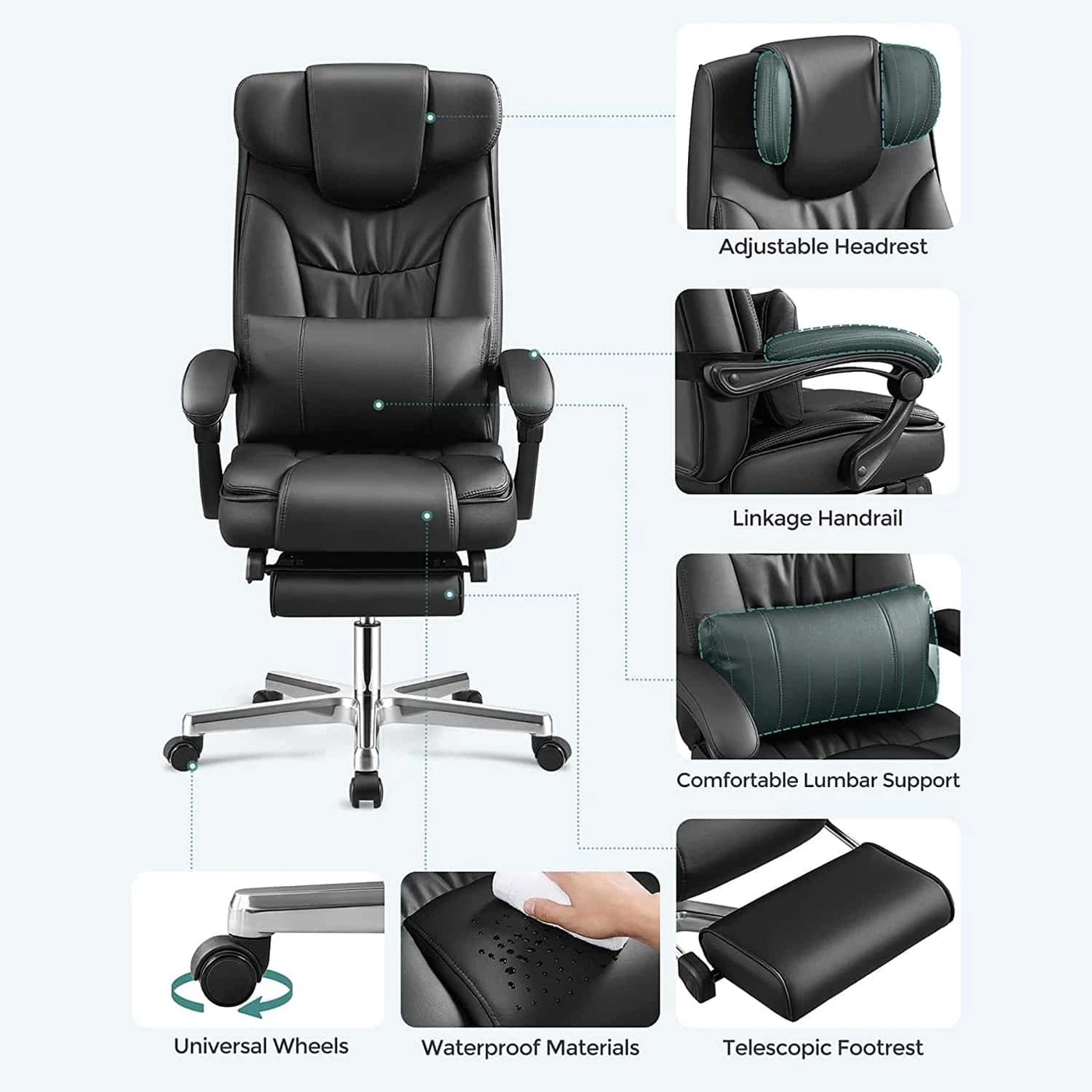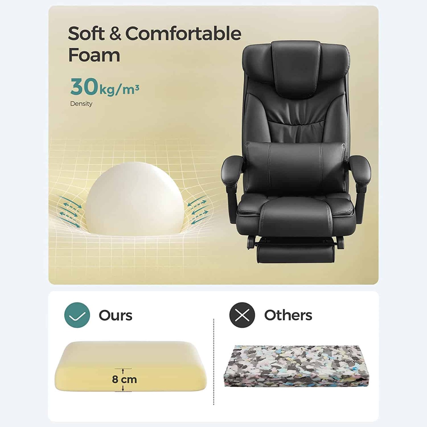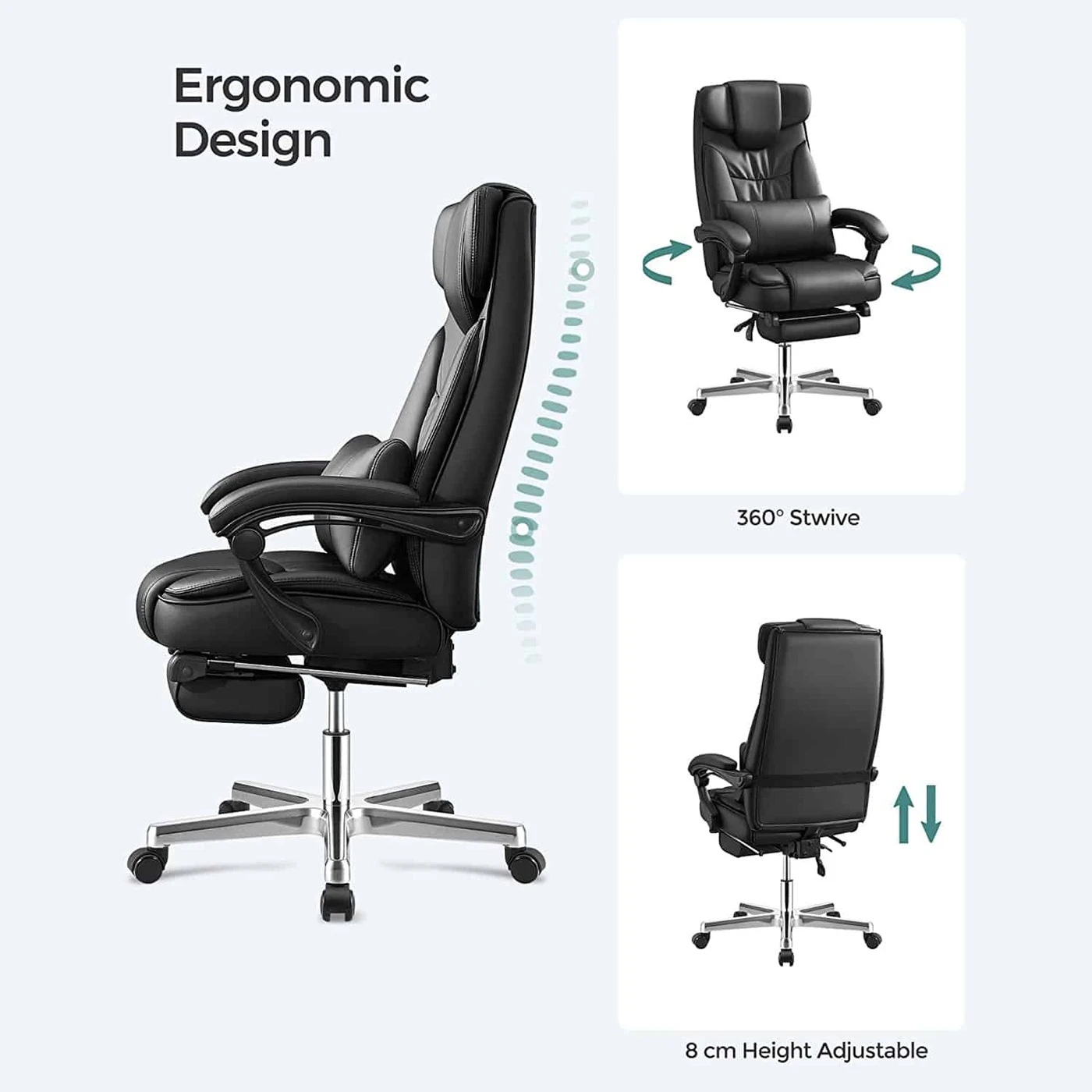 Aprašymas buvo automatiškai išverstas, gali pasitaikyti klaidų.Sulankstoma galvos atrama yra nepriklausomai sukurta Songmics.- Songmics sulankstoma galvos atrama, reguliuojama nuo 0° iki 90°, gali gerai paremti galvą gulint. Sėdėdami išskleiskite galvos atramą, tada ji tarsi suaugo kartu su atlošu, sukurdama kilnią atmosferą Dvigubai pastorinti apmušalai užtikrina malonų pojūtį, gerą kūno atramą ir puikų sėdėjimo komfortą.Produkto detalės: Medžiaga: - viršelis: PU - apmušalai: didelio tankio putplastis - pagrindas: aliuminis. - Porankio velenas: Nailonas - Rankų pagalvė: PU - Ratai: Nailono šerdis su PU danga Matmenys: - Aukštis (bendras): 118-125 cm - Plotis cm (iš viso): 70 cm - Gylis (iš viso): 70 cm - Sėdynės aukštis : 45-52 cm - sėdynės Plotis cm (naudotinas): 50 cm - sėdynės gylis (naudoti): 50 cm - porankio aukštis (nuo sėdynės): 22 cm - atlošo aukštis: 75 cm - Ø pagrindas: 70 cm - Ø ratukai: 50 mm - Ø Smeigtukas: 11 mm - Spalva: juoda - Grynasis svoris: 24 kg - Bendras svoris: 26,7 kg - Maksimali keliamoji galia: 150 kg Pristatymo komplektas: - 1 x biuro kėdė - 1 x tinkamas krepšys - 1 x rankinis (DE, EN, FR, IT, ES) Pastabos: - Taip pat galite atskirai iš mūsų užsisakyti pakaitinius volelius.