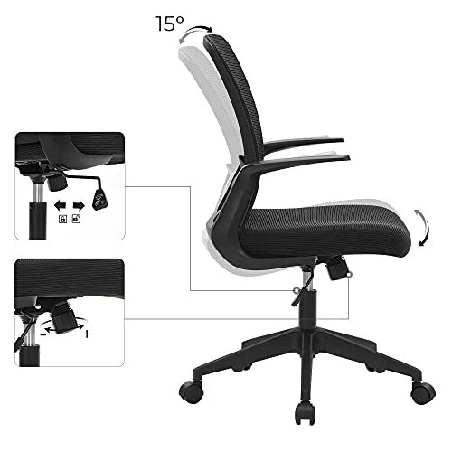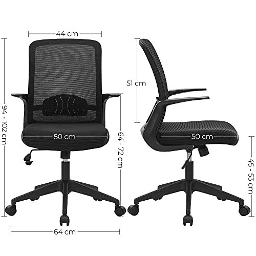 Aprašymas buvo automatiškai išverstas, gali pasitaikyti klaidų.Tinka ne tik biurui: ši tinklinė kėdė taip pat siūlo patogią sėdėjimą darbo kambaryje, kai žaidžiate ar skaitote priešais langą nuo grindų iki lubų. Funkcionalumas: patraukite po kėde esančią svirtį į išorę, kad suaktyvintumėte svirties funkciją. Atlošas ir sėdynė vienu metu gali būti pakreipti atgal iki 15°. Taip pat galima reguliuoti svirties funkcijos pasipriešinimą. Norėdami tai padaryti, tiesiog paspauskite sukamąją rankenėlę po sėdyne.Informacija apie gaminį: Spalva: juoda Medžiaga: poliesteris, plienas, PP plastikas, putplastis, nailonas Bendras dydis: 64 x 54 x (94-102) cm (P x P x A) Sėdynės aukštis: 45-53 cm Sėdynės matmenys: 50 x 50 cm (I x B) Atlošo matmenys: 44 x 51 cm (P x A) Porankio aukštis nuo sėdynės: 19 cm Svoris: 10,5 kg Maks. statinė apkrova: 120 kg Pristatymo komplektas: 1 x biuro kėdė, 1 x priedų paketas, 1 x instrukcija