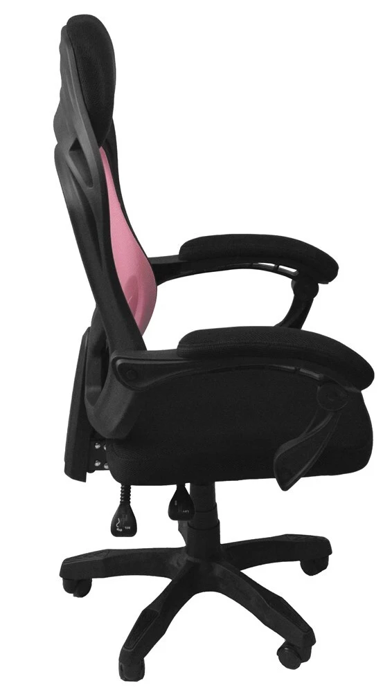 Patogi ir ergonomiška biuro kėdė;Kėdė aptraukta tinkliniu audiniu;Reguliavimas aukštyn/žemyn;Dujinis pakėlimo ir nuleidimo mechanizmas;Patogūs, reguliuojami porankiai;Guminiai ratukai;Kėdės spalva: juoda/rožinė;Bendri kėdės išmatavimai: plotis - 64 cm, aukštis - 115-125 cm, gylis - 61 cm;Kėdės sėdimosios dalies aukštis nuo grindų: pakėlus – 51 cm, nuleidus – 41 cm;Kėdės sėdimosios dalies išmatavimai: plotis – 50 cm, gylis – 50 cm;