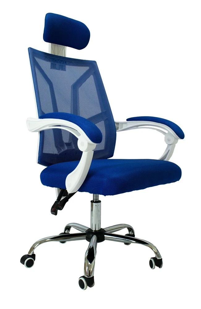 Patogi biuro kėdė ant ratukų su porankiais;Kryžmė – metalinė, chromuota;Kėdė aptraukta tinkleliu;Kėdės išmatavimai: aukštis – 118-128 cm, plotis – 63 cm, gylis – 61 cm;Sėdimosios kėdės dalies išmatavimai: plotis – 50 cm, gylis – 52 cm;Kėdės aukštis nuo grindų iki sėdimos dalies – 47-57 cm;Spalva: mėlyna;Reguliuojamas kėdės aukštis;TILT mechanizmas;Reguliuojama galvos atrama;Guminiai ratukai;
