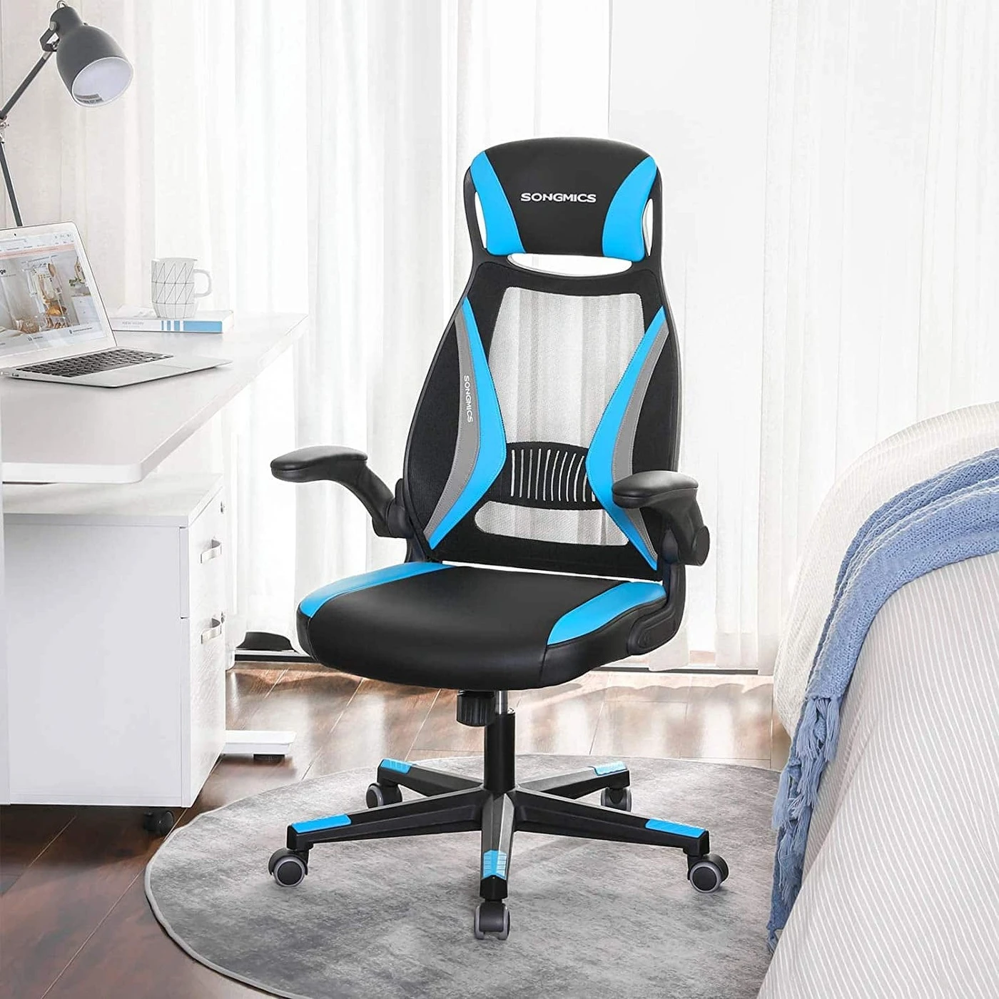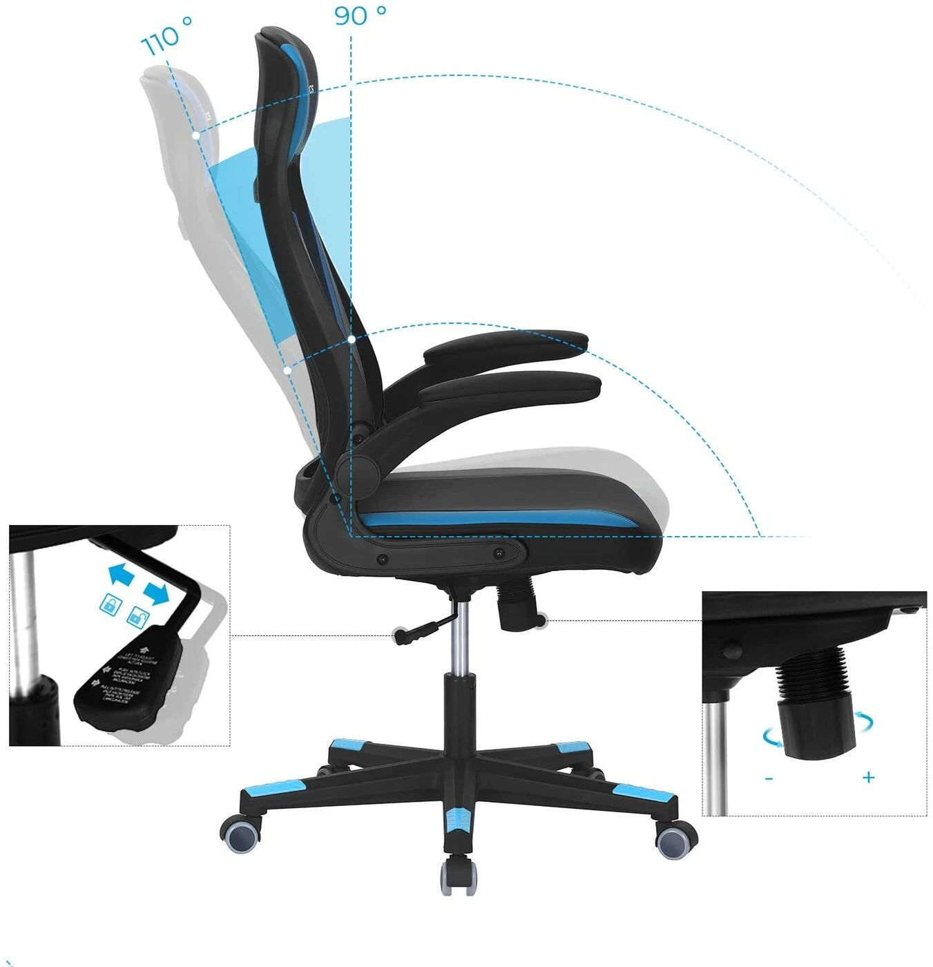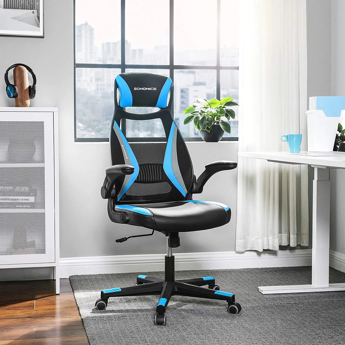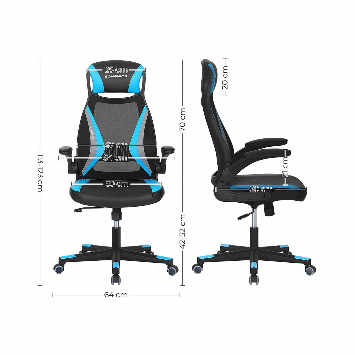 Aprašymas buvo automatiškai išverstas, gali pasitaikyti klaidų.Padidėjęs produktyvumas, pagerėjusi nuotaika Prasta laikysena daro ir taip įtemptas darbo valandas dar nepatogias. Raskite savo idealią laikyseną su šia biuro kėde: jūsų kūnas atsipalaiduos, jūsų protas bus produktyvesnis, o 8 valandos darbo praskris. Šios stalo kėdės privalumai: - Sureguliuokite kėdės aukštį, kad rastumėte idealią sėdėjimo padėtį, atitinkančią jūsų ekrano aukštį. - Dėl ergonomiškos atlošo formos visada galite dirbti atsipalaidavę ir tiesia nugara. - Padėkite rankas ant patogių porankių, aptrauktų PU sintetine oda. - Atpalaiduokite kaklą ir pečius dėl aukšto atlošo, kuris tęsiasi iki galvos atramos.Informacija apie gaminį:- Spalva: juoda-šviesiai mėlyna-pilka- Medžiaga: plienas, putplasčio paminkštinimas, plastikas, PU dirbtinė oda, medžiaginis viršus, nailoniniai ratai- bendras kėdės dydis: 64 x 54 x (113-123) cm (ilgis x Plotis cm) x A)- Sėdynės aukštis (nuo žemės): 42-52 cm - sėdynės matmenys: 50 x 50 cm (I x P) - atlošo matmenys: 47 x 70 cm (I x A) - matmenys galvos atramos dydis: 25 x 20 cm (P x A) - Porankių aukštis (nuo sėdynės): 21 cm - Svoris: 13,5 kg - Maksimali statinė apkrova: 130 kg Pristatymo komplektas: - 1 x biuro kėdė - 1 x priedų paketas – 1 x vadovas (DE, EN, IT , FR, ES) SONGMICS Pastabos: Nedėkite gaminio ant