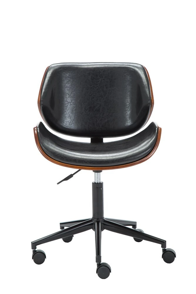 Patogi biuro kėdė ant ratukų;Kryžmė – metalinė;Kėdė aptraukta dirbtine oda;Korpusas pagamintas iš medienos imitacijos;Kėdės išmatavimai: aukštis – 91-112 cm, plotis – 54 cm, gylis – 54 cm;Sėdimosios kėdės dalies išmatavimai: plotis – 52 cm;Atlošo aukštis: 34 cm;Spalva: juoda, ruda;Reguliuojamas kėdės aukštis;TILT mechanizmas;Guminiai ratukai;