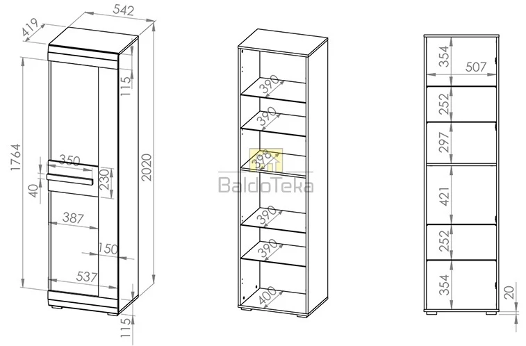 Plotis/Aukštis/Gylis: 55/202/42 cm.