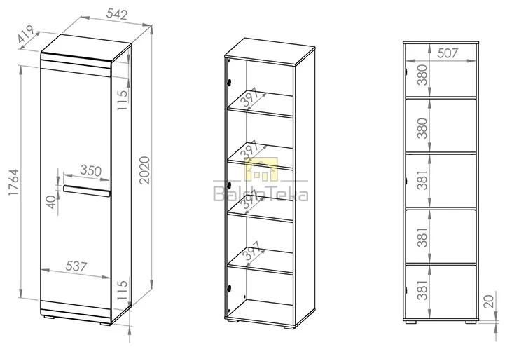 Plotis/Aukštis/Gylis – 55/202/42 cm.
