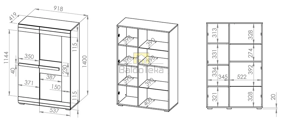 Plotis/Aukštis/Gylis: 92/140/42 cm.
