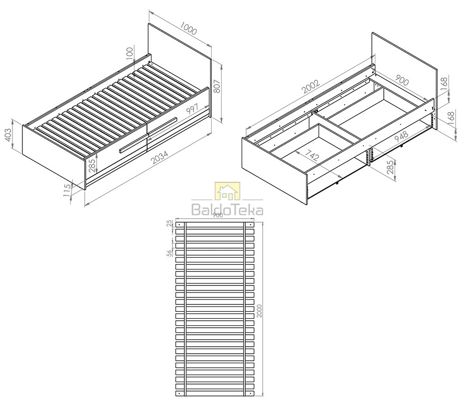 | Pritaikyta čiužiniui | 900 x 2000 mm |
