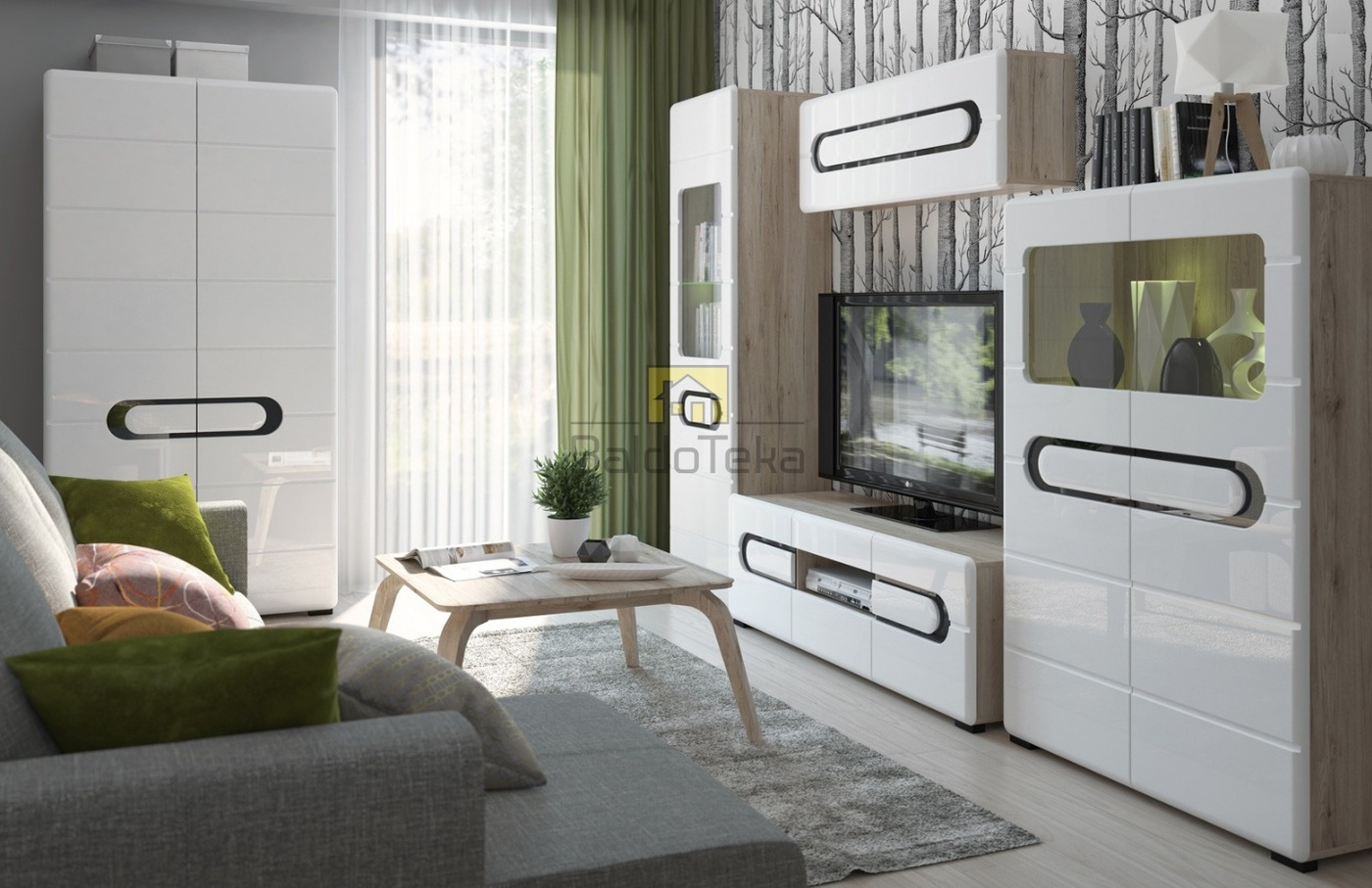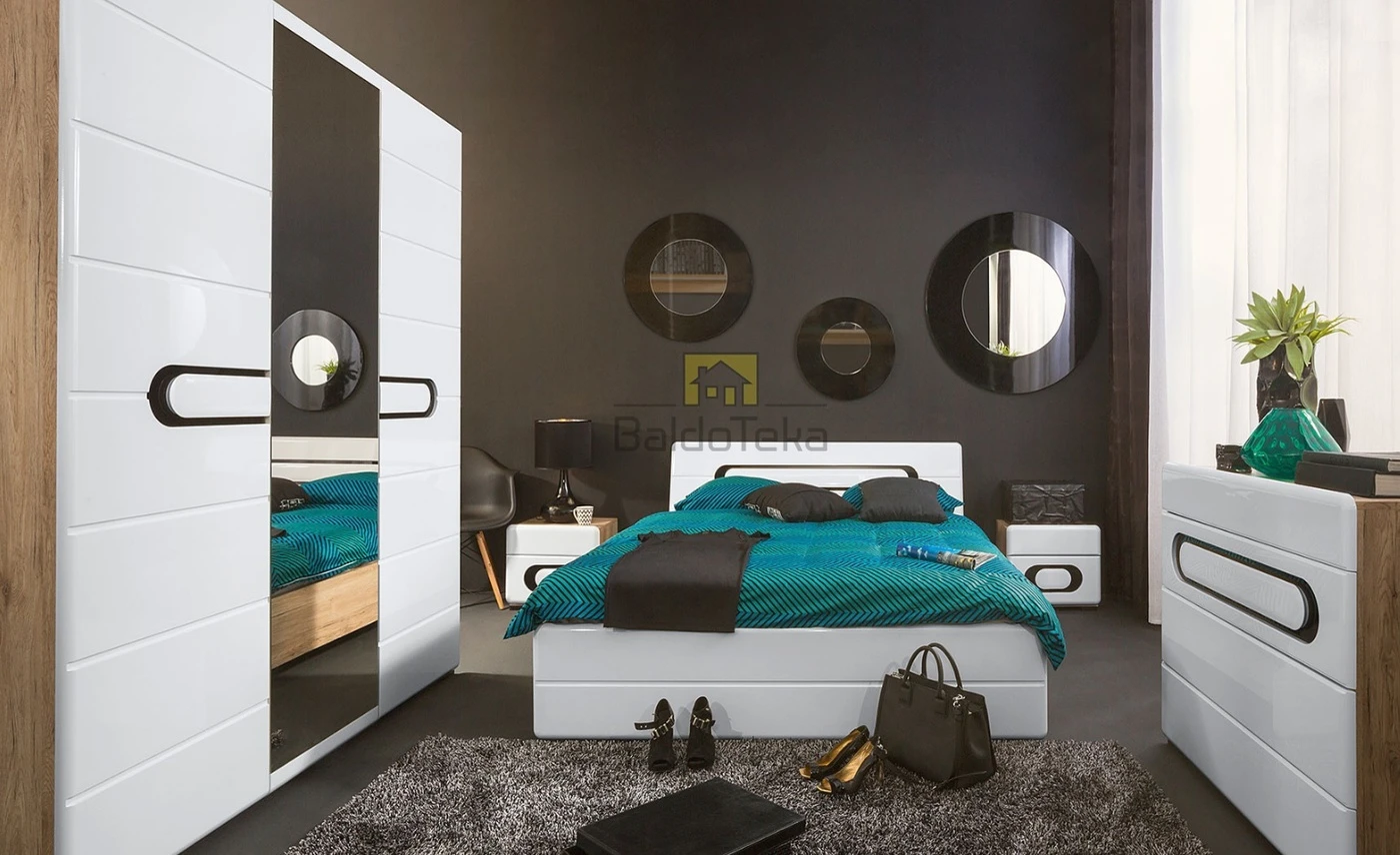 LMDP/MDF/akrilinis stiklas. Spalva – San Remo ąžuolas + balta blizgi.