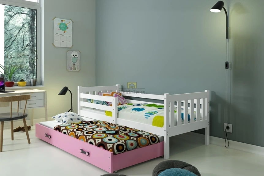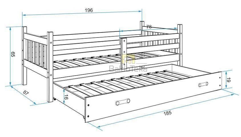 Su 190×80 cm ir 180×80 cm poliuretaniniais čiužiniais ir apsaugine tvorele.