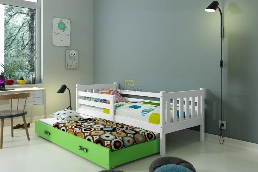 Su 190×80 cm ir 180×80 cm poliuretaniniais čiužiniais ir apsaugine tvorele.