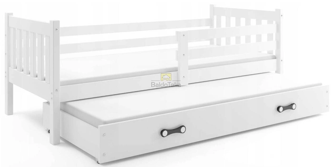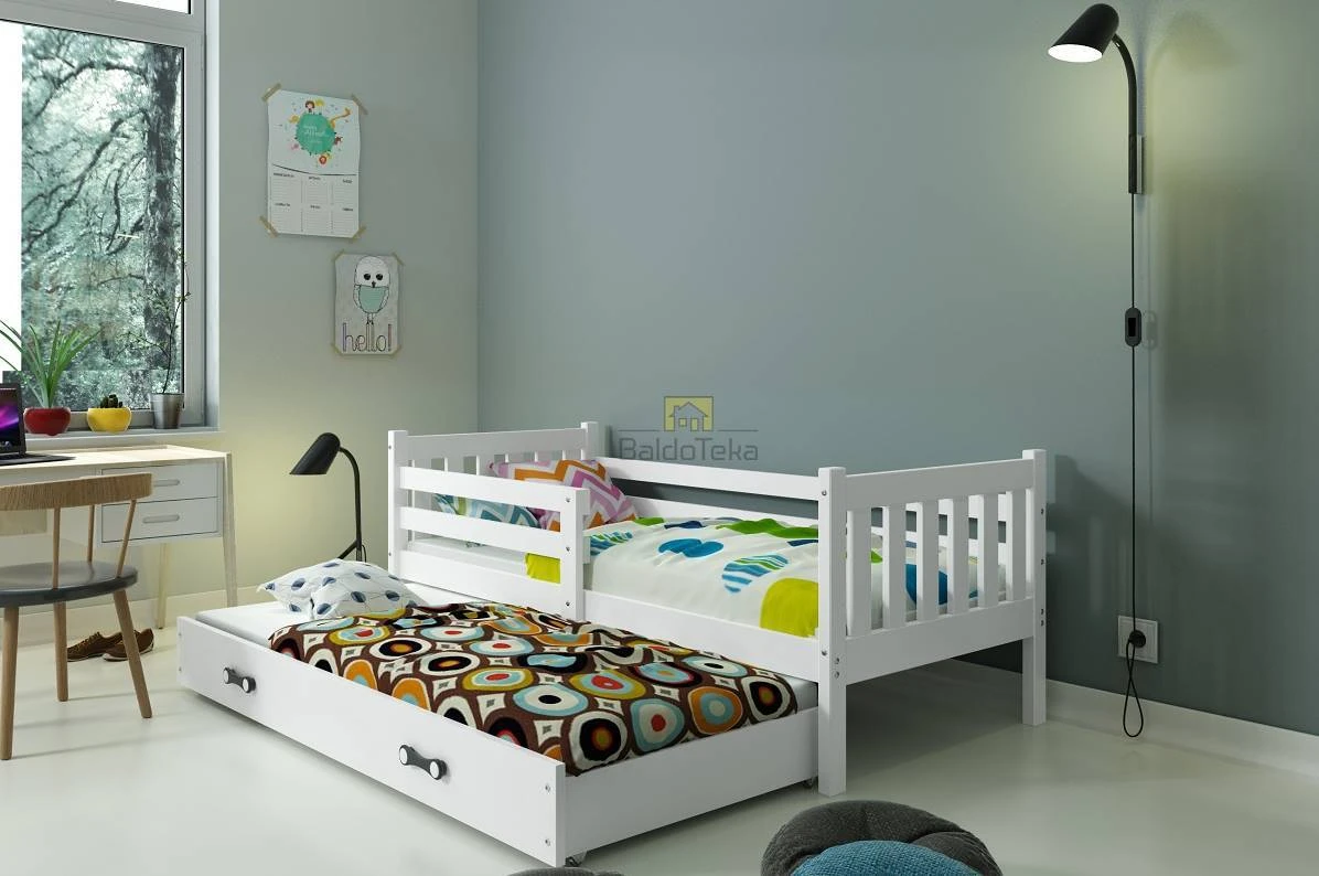 Su 190×80 cm ir 180×80 cm poliuretaniniais čiužiniais ir apsaugine tvorele.