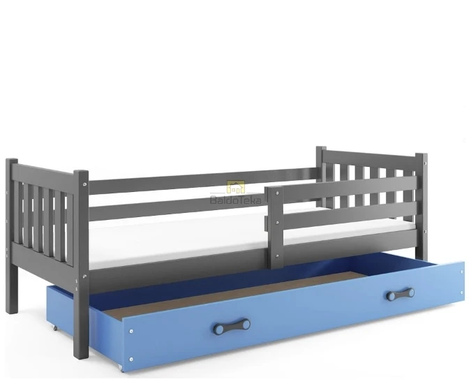 Su 190 x 80 cm čiužiniu, patalynės dėže ir apsaugine tvorele.