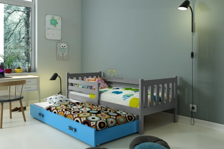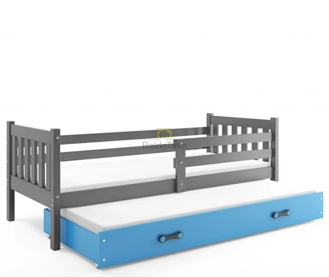 Su 190×80 cm ir 180×80 cm poliuretaniniais čiužiniais ir apsaugine tvorele.