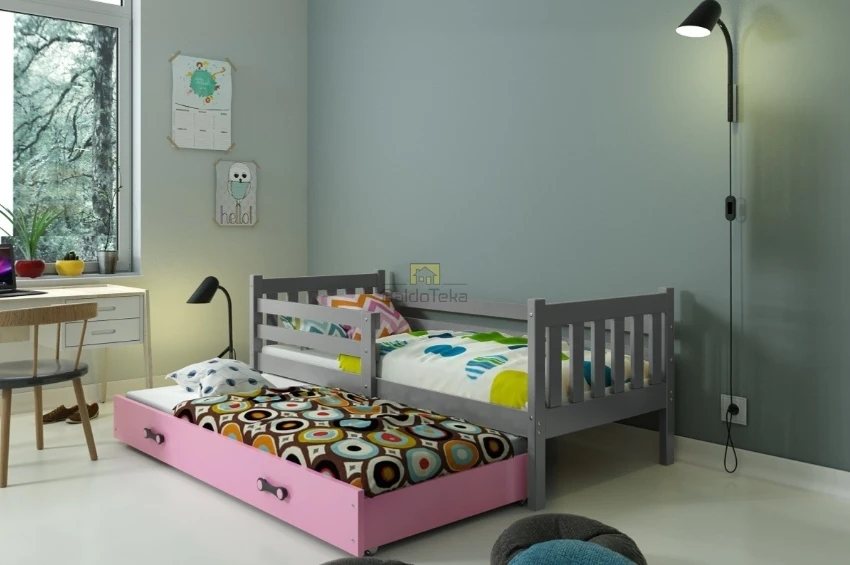 Su 190×80 cm ir 180×80 cm poliuretaniniais čiužiniais ir apsaugine tvorele.