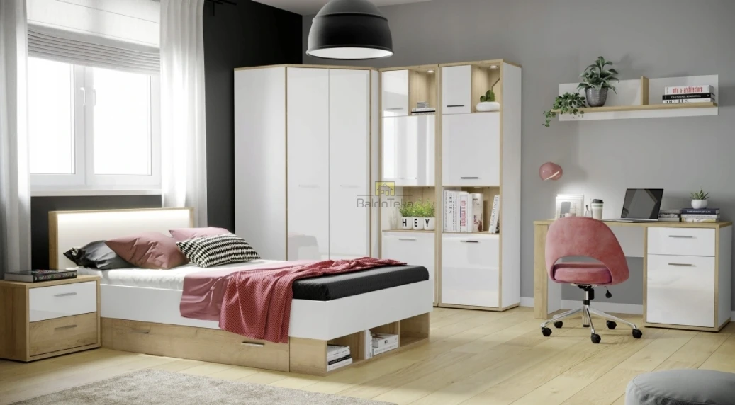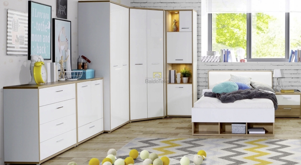 Spalva – balta matinė/ąžuolas Riviera/balta blizgi.