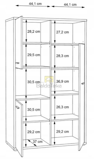 Plotis/Aukštis/Gylis: 94,5/159,9/41,5 cm.