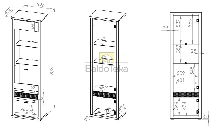 Plotis/Aukštis/Gylis: 60/203/41 cm.