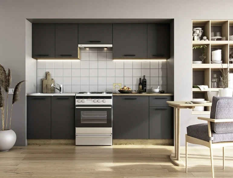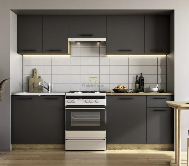 Spalva: korpusas – ąžuolas craft; fasadai – antracitas (tamsiai pilka); stalviršis – ąžuolas craft.Komplektacija nekeičiama.