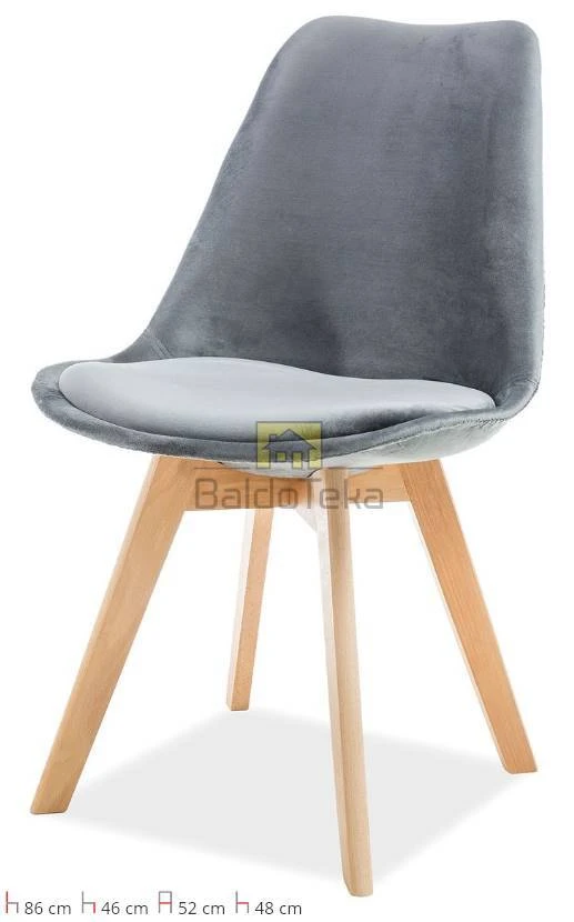 Stylinga pilka aksominė kėdutė su natūralaus buko pagrindu