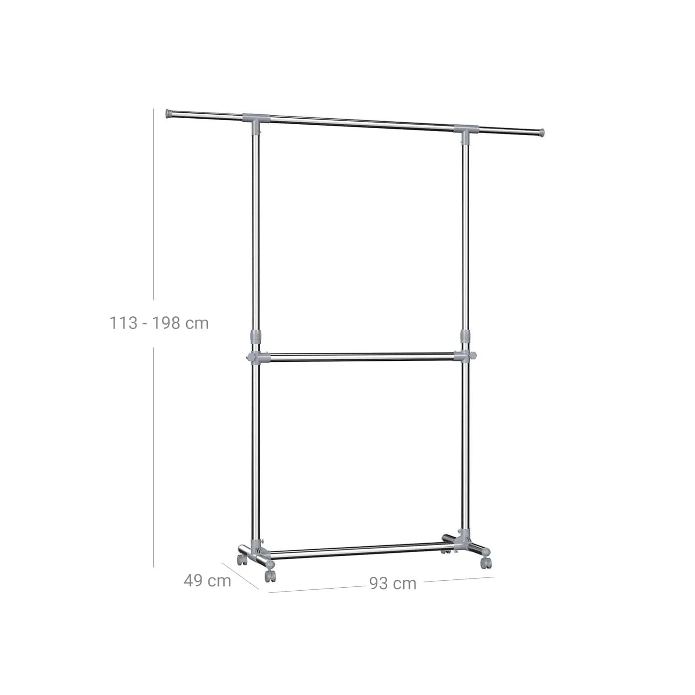 Aprašymas buvo automatiškai išverstas, gali pasitaikyti klaidų.Reguliuojamas aukštisŠi jungtis yra sriegiuota, tiesiog pasukite, kad nustatytumėte aukštį. Reguliuojamas aukščio diapazonas: 113-198 cm; Aukštis lengvai reguliuojamas atsukant žvaigždės formos fiksavimo varžtą. Aukštis fiksuojamas priveržiant. Maksimalus apatinės juostos aukštis: 113 cm ABS plastikinės jungtys/Fiksuojami ratukai Ilgaamžiai, patvarūs, atsparūs spaudimui ir lenkimui, nebraižo vamzdžių. Ant pagrindo esančios jungtys yra su fiksavimo varžtais, kurie pagerina drabužių kabyklos stabilumą.4 ratukai gali būti pasukti 360°, leidžiantys laisvai judėti; 2 iš jų su Bremenu, kuris apsaugo nuo nepageidaujamo slydimo Vamzdžiai apkalti nerūdijančiu plienu Ši medžiaga idealiai sujungia nerūdijančio plieno vamzdžio ir anglinio plieno vamzdžio savybes, atspari rūdims ir korozijai, nesideformuoja, tvirta ir ilgaamžė; paviršius yra lygus ir lengvai valomas; vamzdžio pjūvis yra švarus ir lygus, lengvai montuojamas.Išsami informacija apie gaminį: - Medžiaga: su nerūdijančio plieno vamzdeliu, ABS plastikas - Keliamoji galia: 25 kg - Ilgis: 101-166 cm, Plotis cm: 49 cm, aukštis: 113-198 cm - Spalva: pilka - Pakuotės dydis: 22,5 x 9 x 103 ,5 cm - vienas svoris: 4,1 kg Pristatymo komplektas: - 1 x drabužių kabykla (plastikinės dalys / plastikinės jungtys, su nerūdijančio plieno vamzdžiu, 4 ratukai)