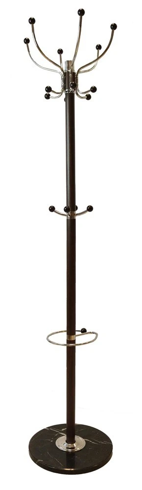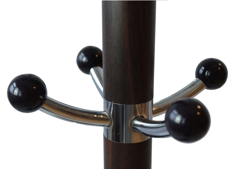 Modernaus dizaino, pastatoma kabykla su įmontuotu skėčių stovu;12 besisukančių kabliukų;4 papildomi kabliukai vaikų drabužiams pakabinti;Tvirtas ir stabilus pagrindas;Drabužių kabykla pagaminta iš laminuoto metalo, o pagrindas - iš marmuro;Bendri kabyklos išmatavimai: plotis - 40 cm, aukštis - 177 cm, gylis - 40 cm;Pagrindo skersmuo: 37 cm;Drabužių kabyklos spalva: ruda;