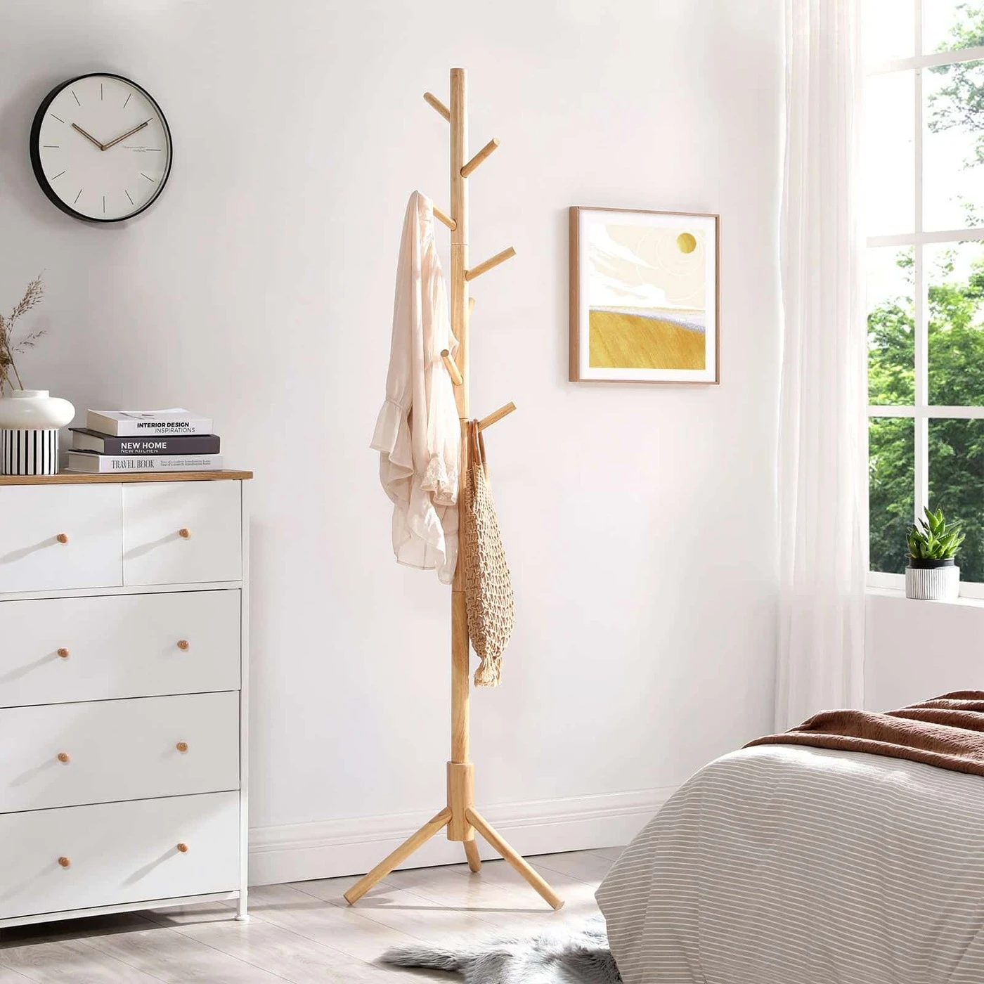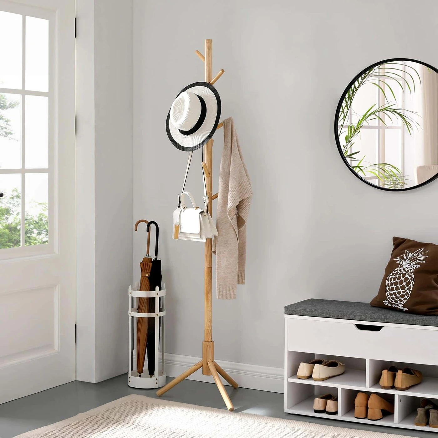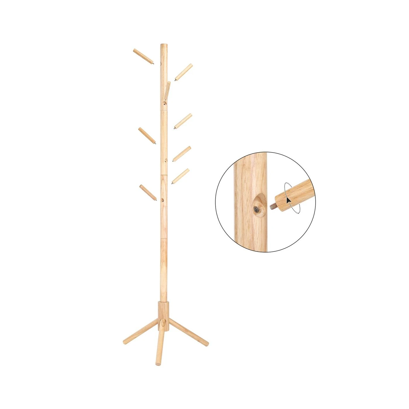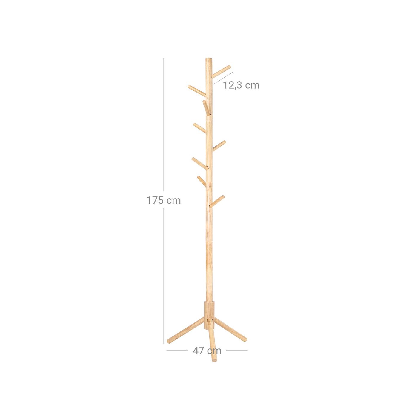 Aprašymas buvo automatiškai išverstas, gali pasitaikyti klaidų.Jūsų laimei dar trūksta šio laisvai stovinčio palto stovo. Tvarkingi namai tiesiog džiugina. Įsigykite šią VASAGLE drabužių spinta ir ženkite pirmąjį žingsnį link laimingesnių namų. Nuvalykite krūvas drabužių nuo sofos ir paverskite namus atgal į geros savijautos zoną. Šios paltų kabyklos akcentai iš pirmo žvilgsnio: - Ši kabykla, paremta trijų kojų stovu, yra stabili ir neapvirs, kai pakabinsite striukę ant kabliuko. Be to, jis yra ypač tvirtas ir patvarus. - Yra 8 kabliukai suapvalintais galais, kad galėtumėte pakabinti drabužius, krepšius ir kitus daiktus, kad būtų lengviau pasiekti ir išlaikyti tvarkingumą. - Jums nereikės sukti galvos dėl surinkimo: šios kabyklos kūrimas yra vaiko žaidimas!Informacija apie gaminį: - Spalva: Natūrali - Medžiaga: Guma - Dydis: 47 x 47 x 175 cm (P x P x A) - Kabliuko ilgis: 12,3 cm - Svoris: 2,2 kg - Maksimali statinė apkrova vienam kabliui: 5 kg- Maksimali bendra statinė apkrova: 15 kg Pristatymo apimtis:- 1 x paltų kabykla- 1 x rankinė (DE, EN, FR, ES, IT) VASAGLE Pastabos:- Nelaikykite gaminio ilgą laiką tiesioginiuose saulės spinduliuose.