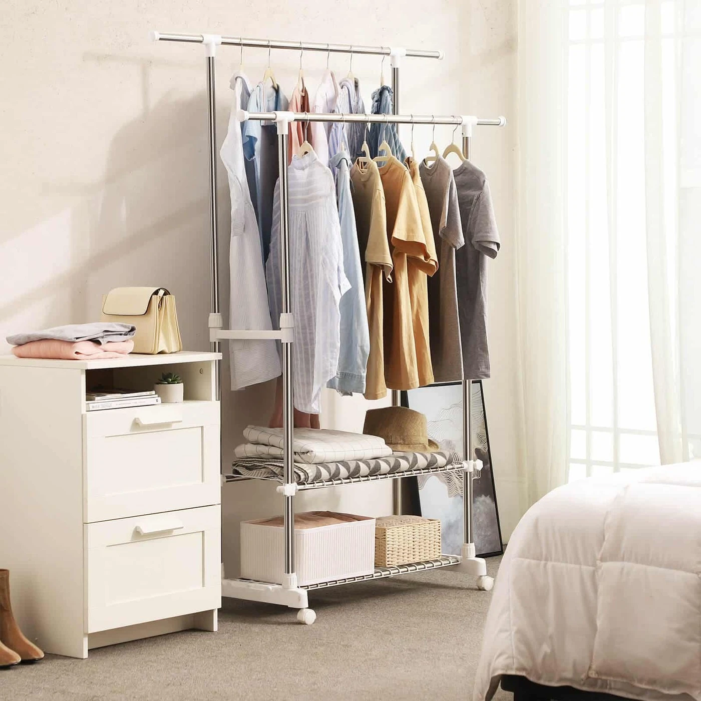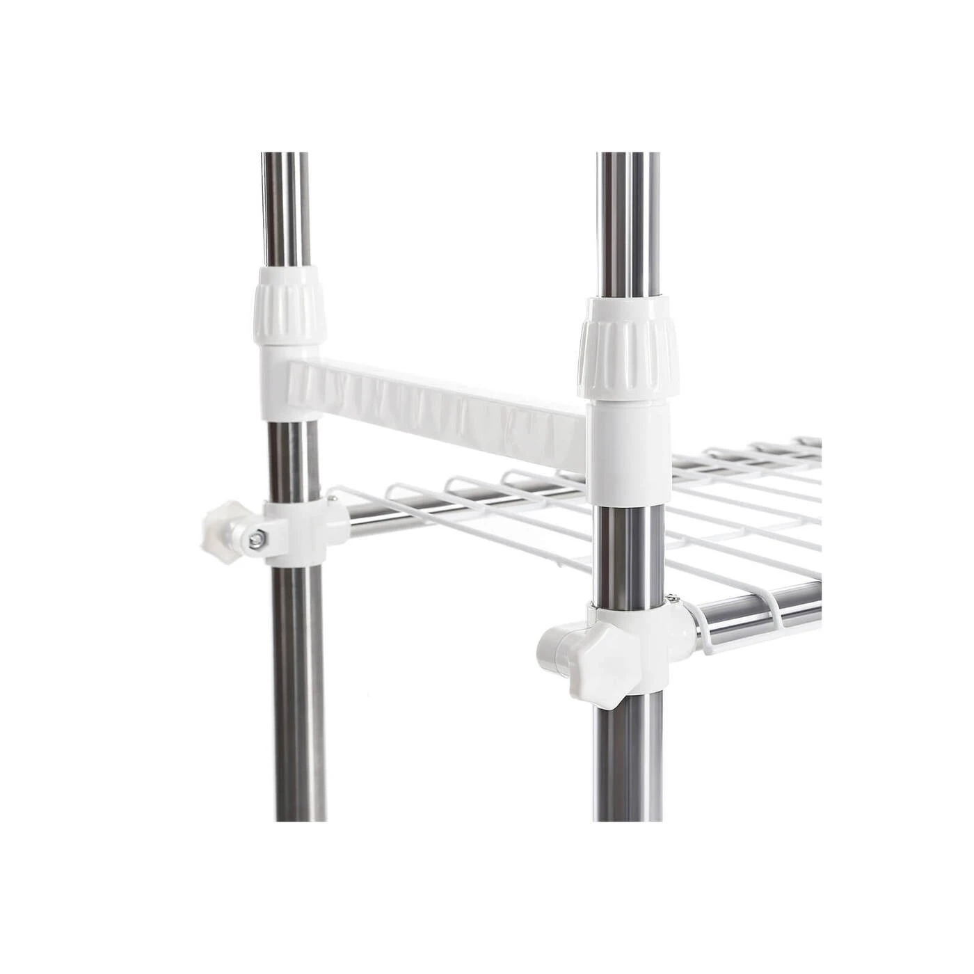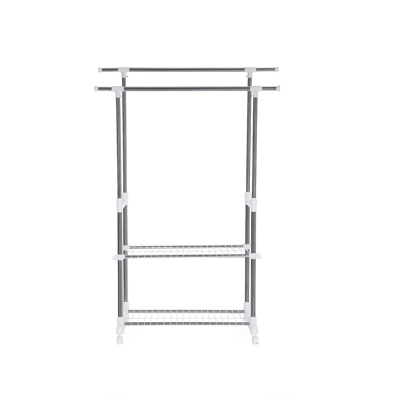 Aprašymas buvo automatiškai išverstas, gali pasitaikyti klaidų.Itin lengva Songmics drabužių kabykla dėl saugios ir stabilios konstrukcijos yra labai atspari, puikiai tinka kiekviename bute! Tvirtas rėmas pagamintas iš metalinių vamzdžių, padengtų nerūdijančiu plienu. 2 drabužių kabyklos ir 2 tinklinės lentynos turi pakankamai vietos suknelėms, palaidinėms, krepšiams, skrybėlėms ir dar daugiau. Atstumas tarp dviejų trinkelių yra reguliuojamas, jį galima optimaliai pritaikyti pagal Jūsų poreikius. Jūsų daiktai gali būti tvarkingai ir lengvai pasiekiami ant jo. Praktiški sklandžiai einantys ratukai užtikrina patogų judėjimą. Drabužių vežimėlį galima lengvai išardyti, todėl jį galima laikyti arba transportuoti taupant vietą. Su praktiška teleskopine funkcija gausite funkcionalų ir savo poreikiams pritaikomą pagalbininką.Išsami informacija apie gaminį: - Matmenys: (90-154) x (95-172) x 42 cm (P x A x G) - Viršutinės tinklelio pagalvėlės gylis: apie 33 cm - Apatinio tinklinio pagalvėlės gylis: apie 26 cm - Medžiaga: su nerūdijančio plieno vamzdeliu + PP plastiku Spalva: balta - Pakuotės dydis: 93 x 36 x 9 cm - Vieno svorio: 6,7 kg Pakuotės turinys: -1 x drabužių kabykla - 1 x instrukcija (DE, EN, FR, IT, ES)